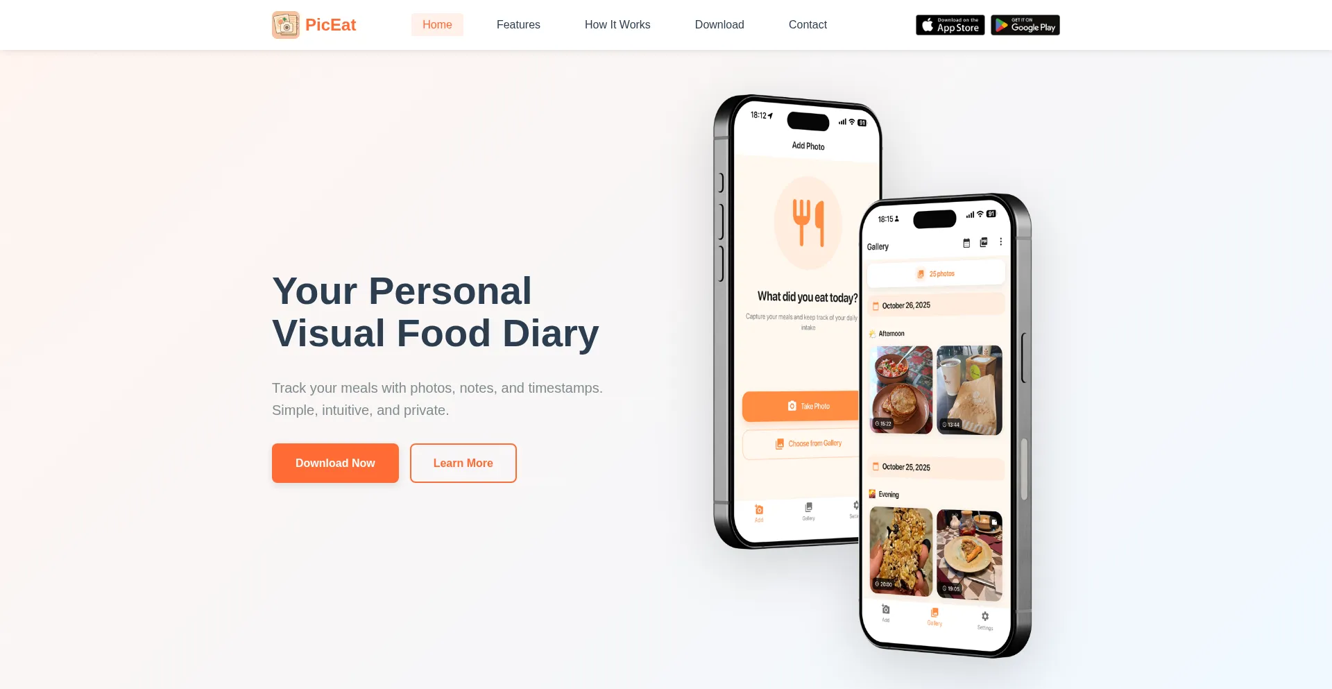 Your Personal Visual Food Diary - Track your meals with photos, notes, and timestamps. Simple, intuitive, and private.