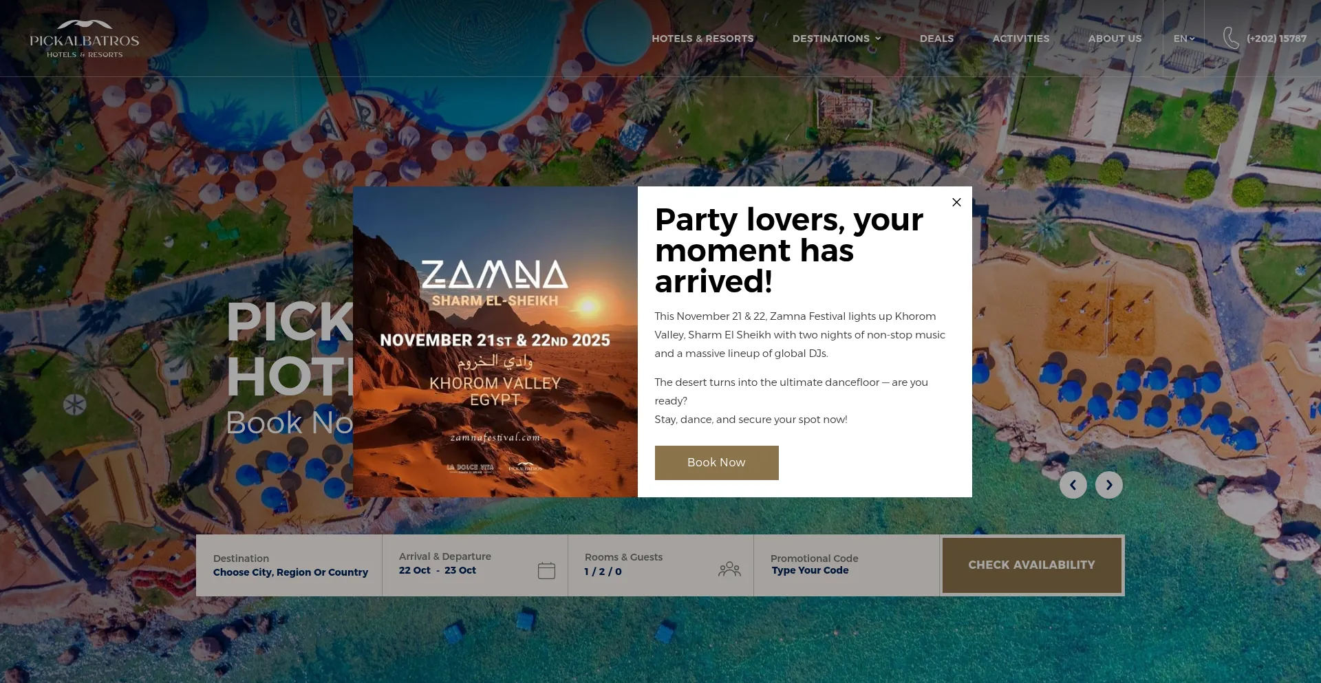 Welcome to Pickalbatros Hotels & Resorts Official Site. Our big hospitality chain boasts a large portfolio of hotels in Egypt and Morocco. Book now!