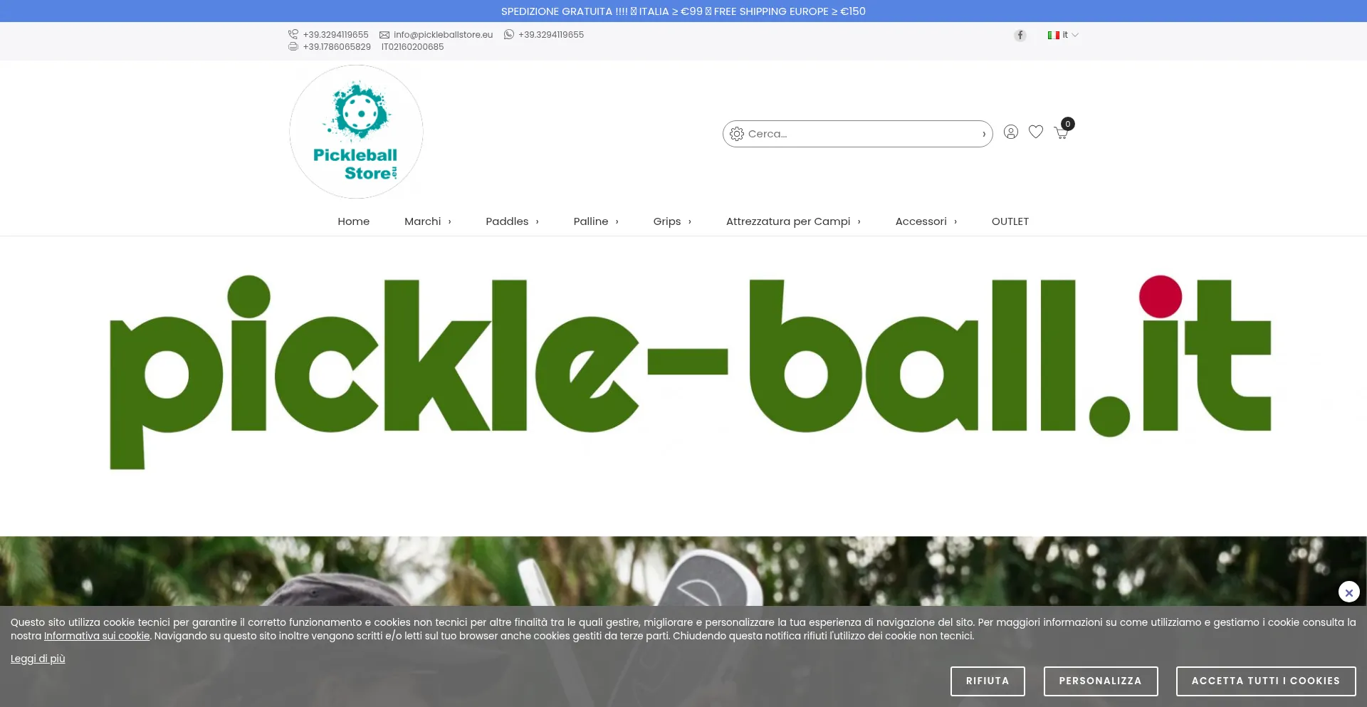 Negozio specializzato nell'attrezzatura da pickleball, paddles, racchette, grip e overgrip, palline, borse ed altro.