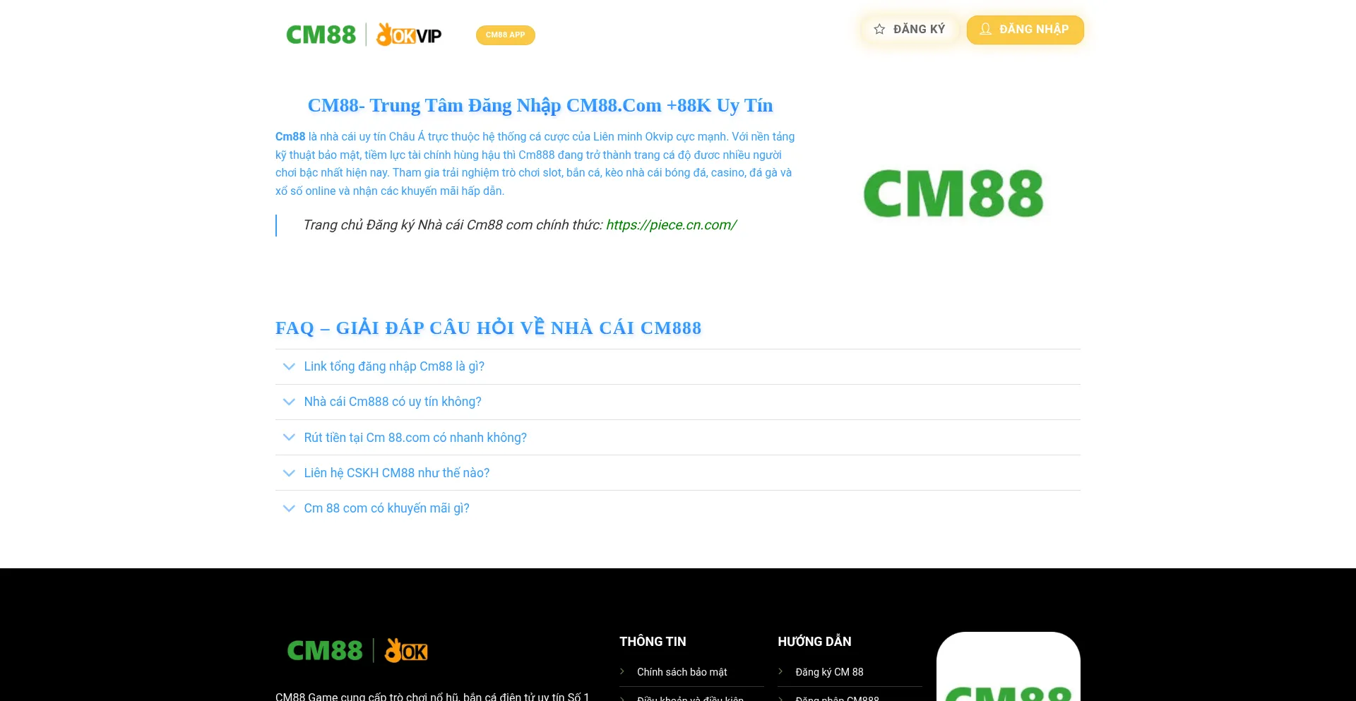 Cm88 là nhà cái uy tín Châu Á trực thuộc hệ thống cá cược của Liên minh Okvip cực mạnh.