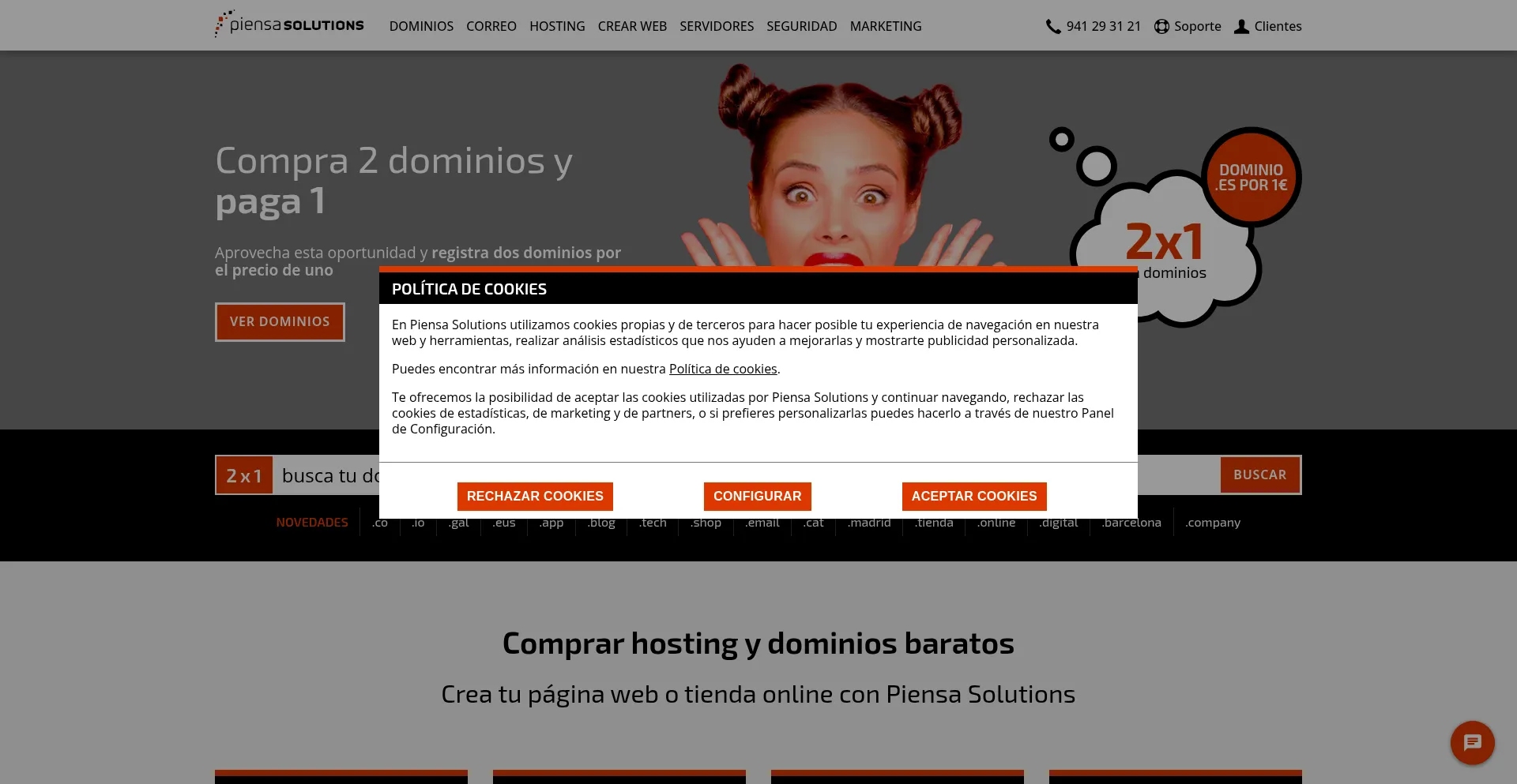 Registra tu dominio y hosting más baratos con Piensa Solutions. Consigue certificados SSL, VPS, creador de tiendas online... para asegurar tu presencia online.