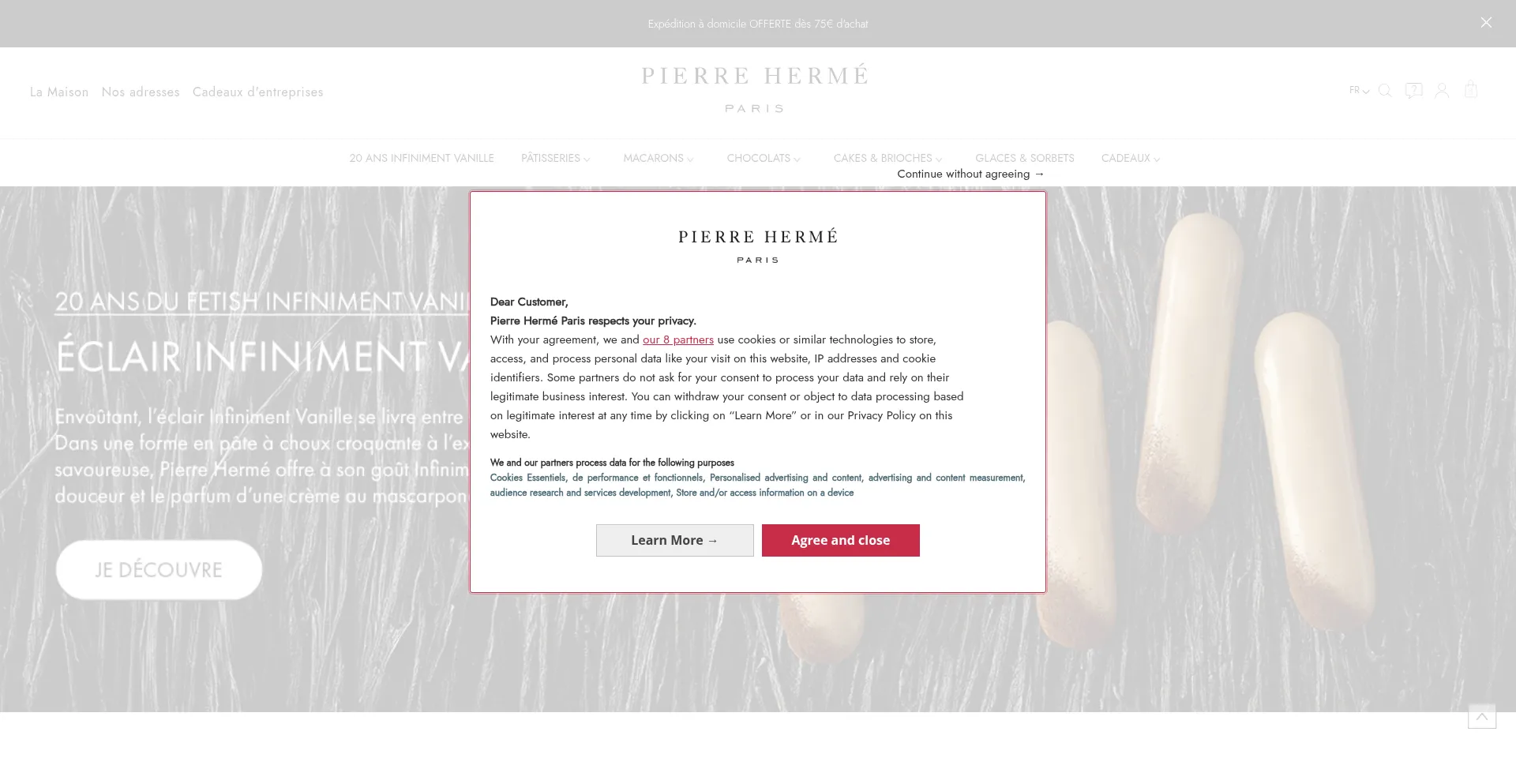 The pierreherme.com website uses Google Tag Manager to add and update tracking tags on its website.