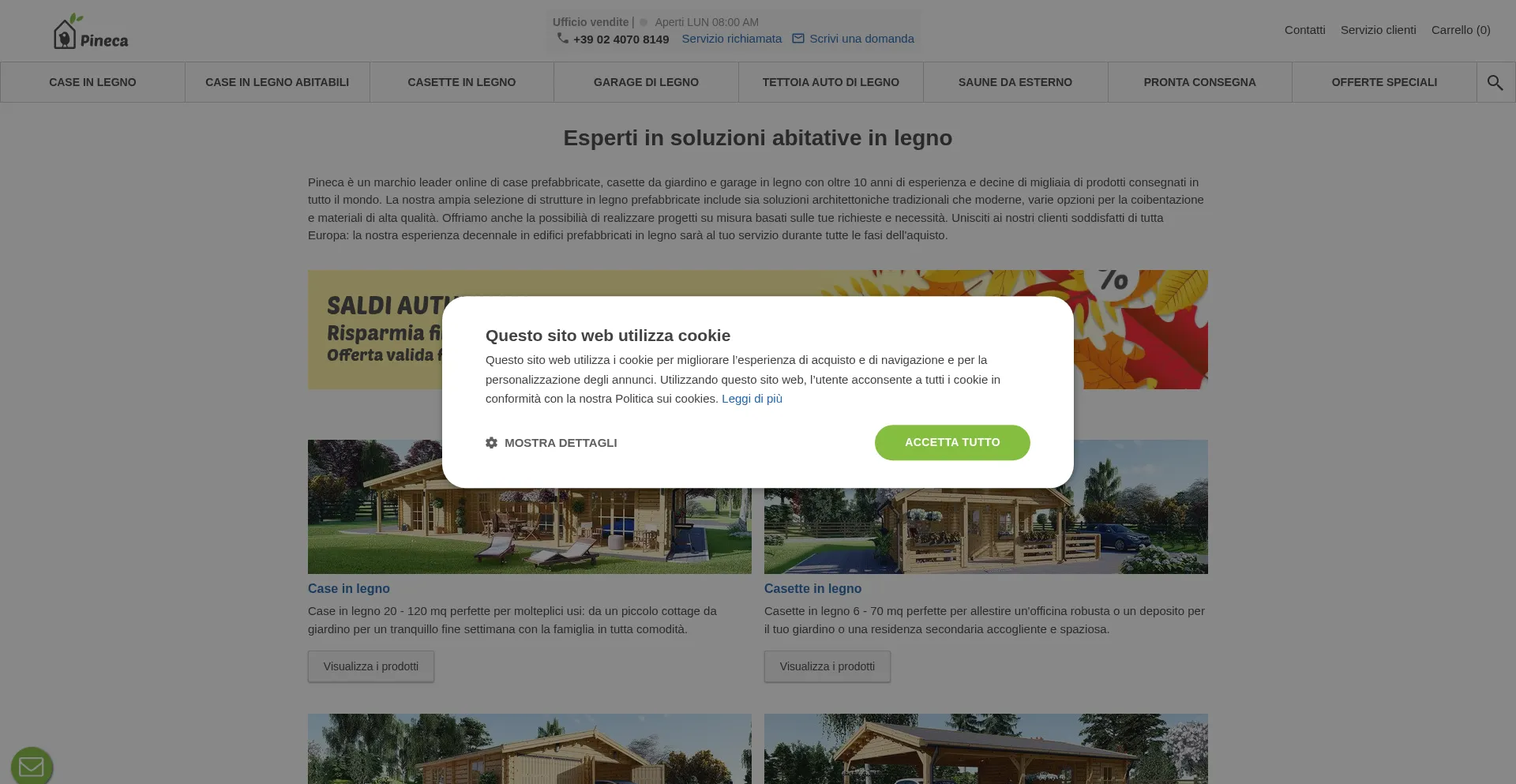 Pineca è un marchio online leader nel settore delle case prefabbricate, casette da giardino e garage in legno con oltre 10 anni di esperienza e decine di migliaia di prodotti c...