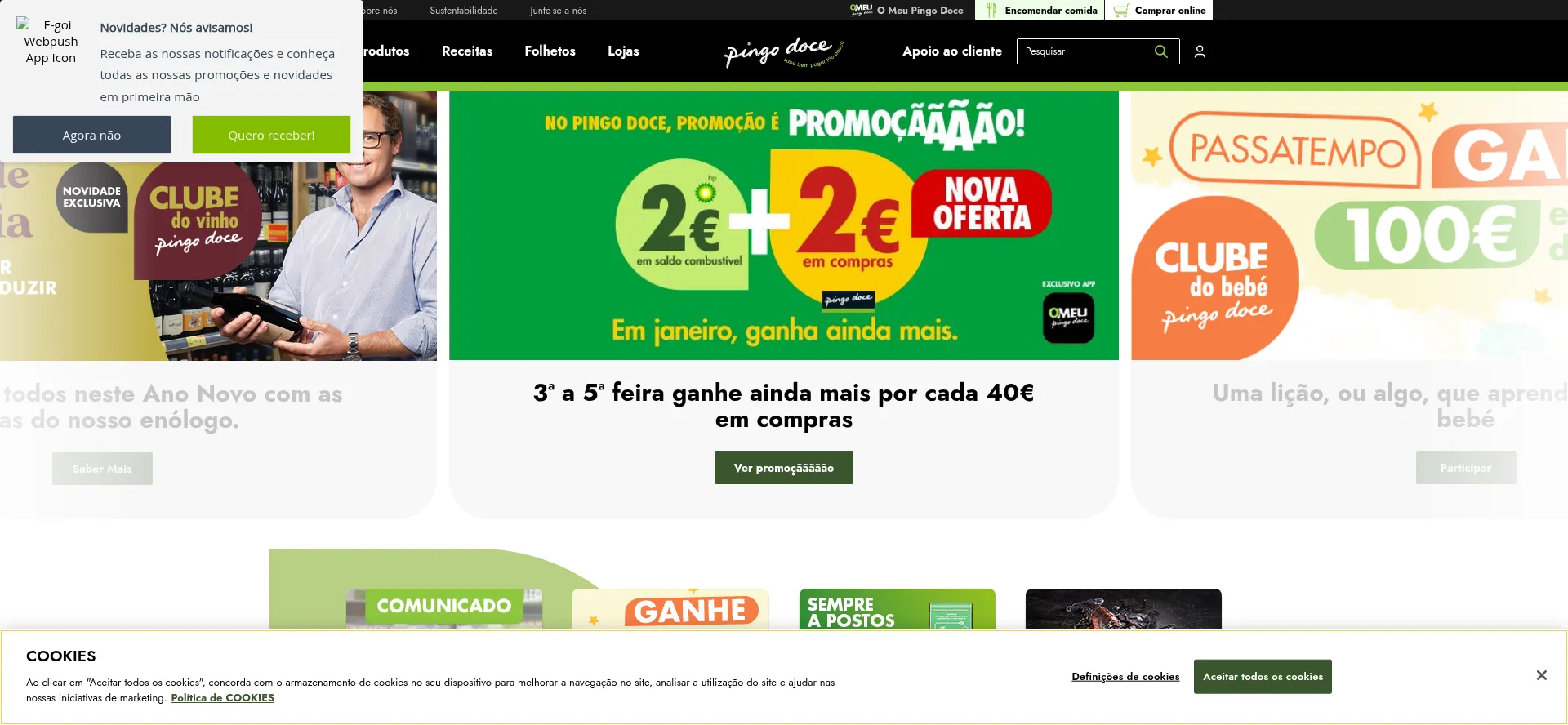The website implements cookie consent mechanisms in compliance with privacy regulations such as GDPR or CCPA. This demonstrates that pingodoce.pt adheres to data protection standards and provides users with control over personal data collection practices.