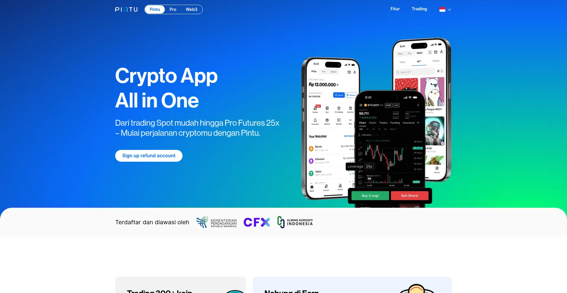 Pintu adalah Aplikasi Jual Beli dan Investasi Bitcoin dan Aset Digital dengan Harga Final, Tanpa Komisi, Tarik Rupiah Murah. Aman Terdaftar di BAPPEBTI.