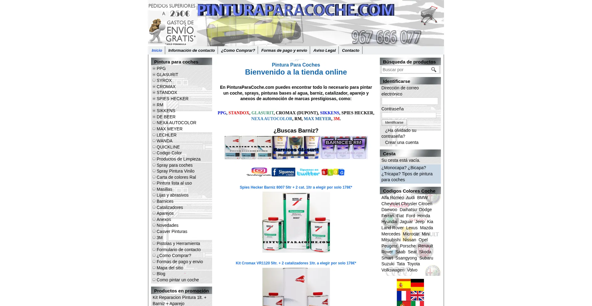 Todo lo necesario para pintar un coche. STANDOX, CROMAX (DUPONT), GLASURIT, PPG, RM, SPIES HECKER, SIKKENS, NEXA