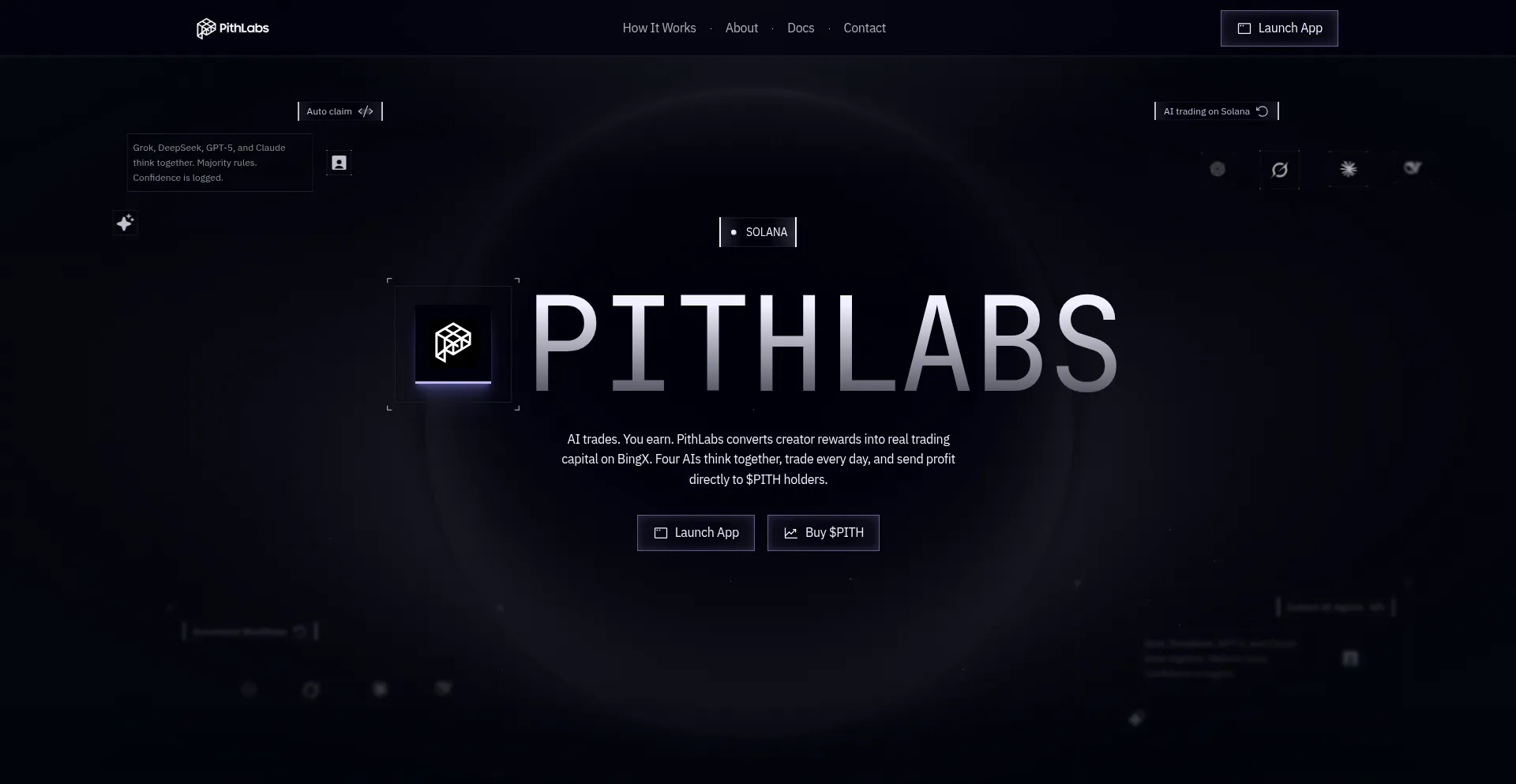 PithLabs converts creator rewards into trading capital on BingX. Four AIs reach consensus, execute, and pay daily profit to $PITH holders.
