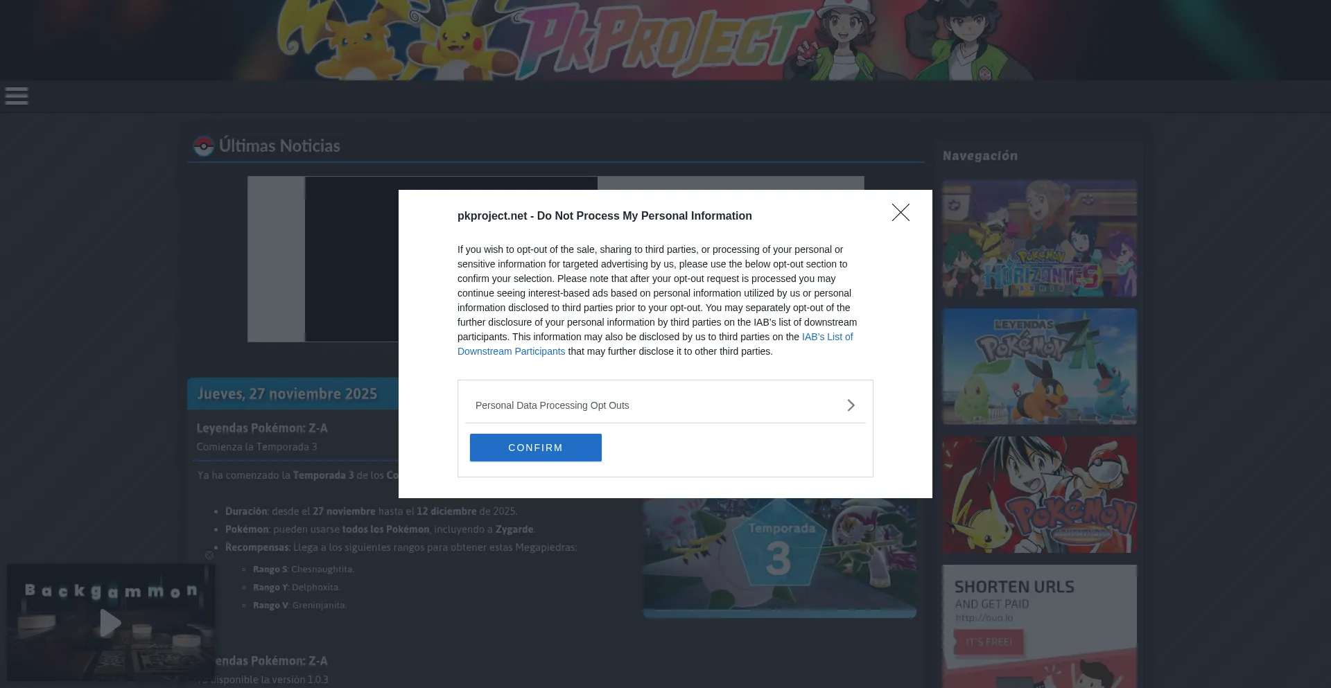 Noticias sobre Leyendas Pokémon: Z-A, listado de todos los episodios y Pokédex para todos los juegos.