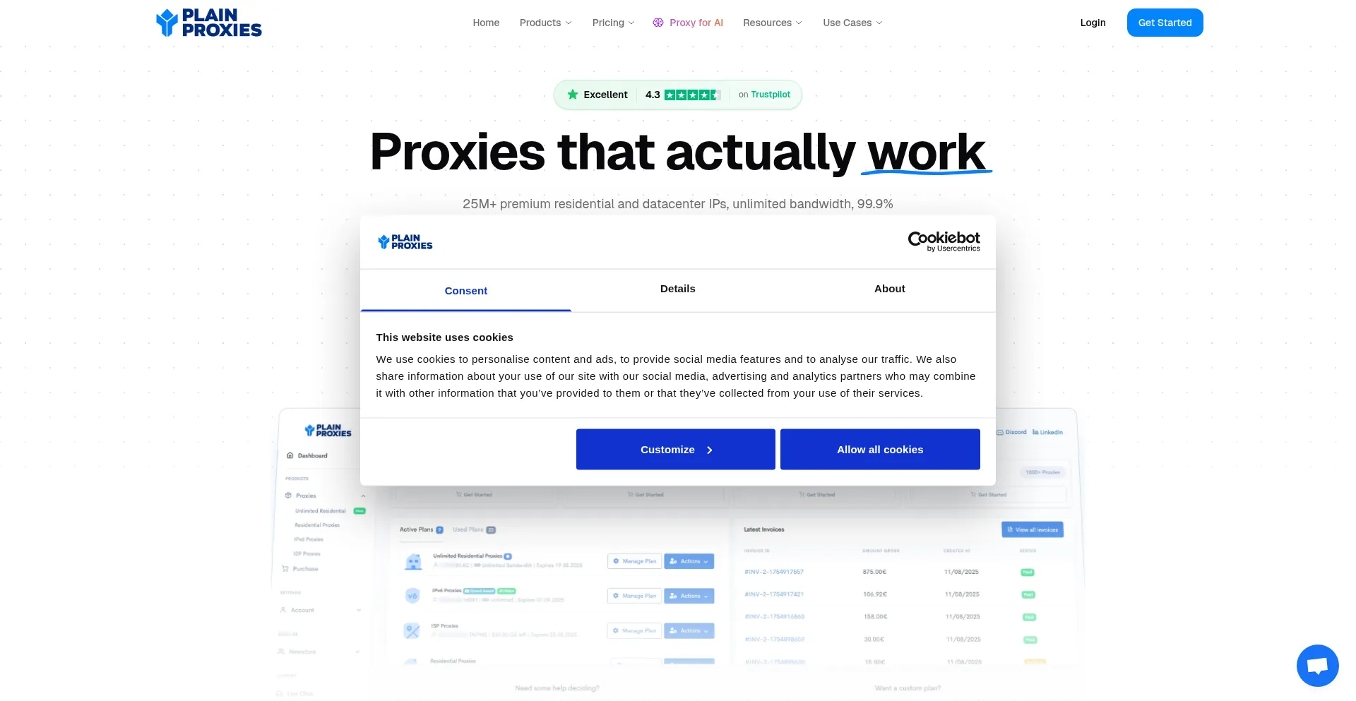 The website implements cookie consent mechanisms in compliance with privacy regulations such as GDPR or CCPA. This demonstrates that plainproxies.com adheres to data protection standards and provides users with control over personal data collection practices.