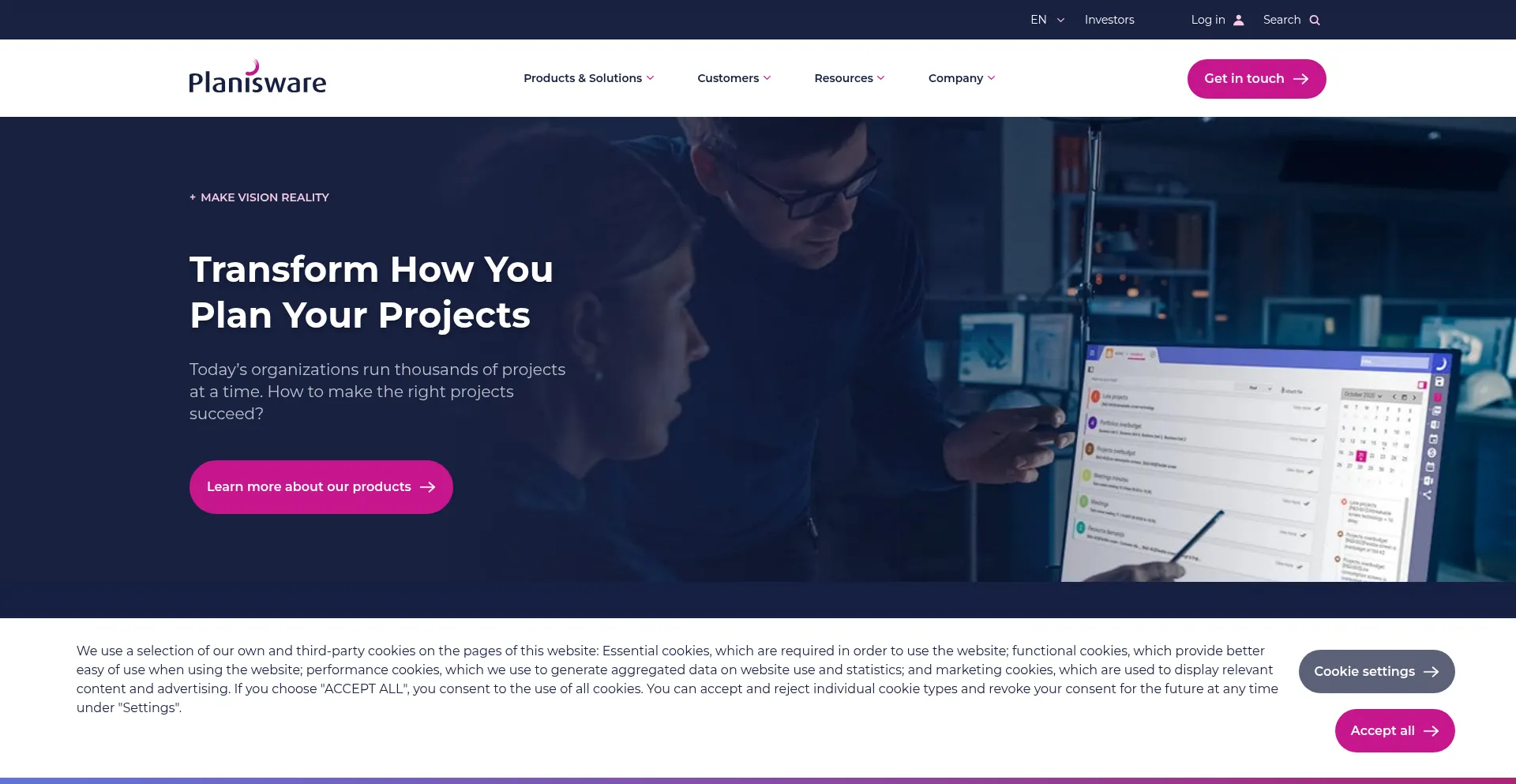 The website implements cookie consent mechanisms in compliance with privacy regulations such as GDPR or CCPA. This demonstrates that planisware.com adheres to data protection standards and provides users with control over personal data collection practices.