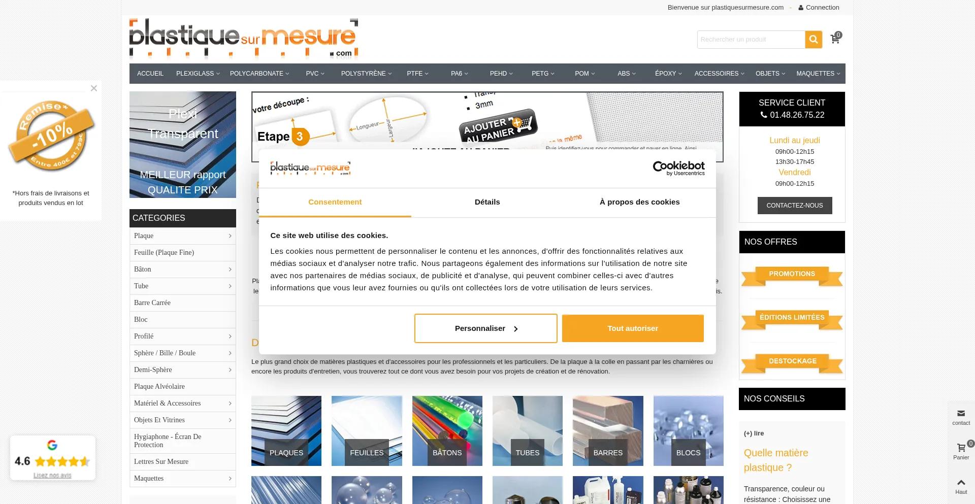 Plaque, tube... en plastique (plexi, PVC...) à la découpe
