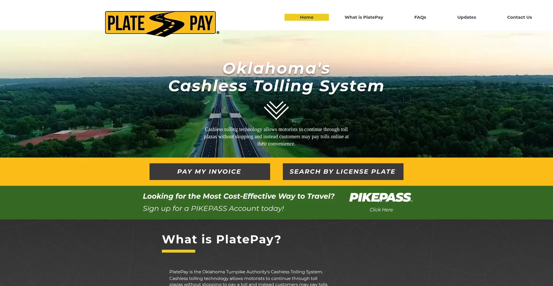 PlatePay is the Oklahoma Turnpike Authority's Cashless Tolling System.