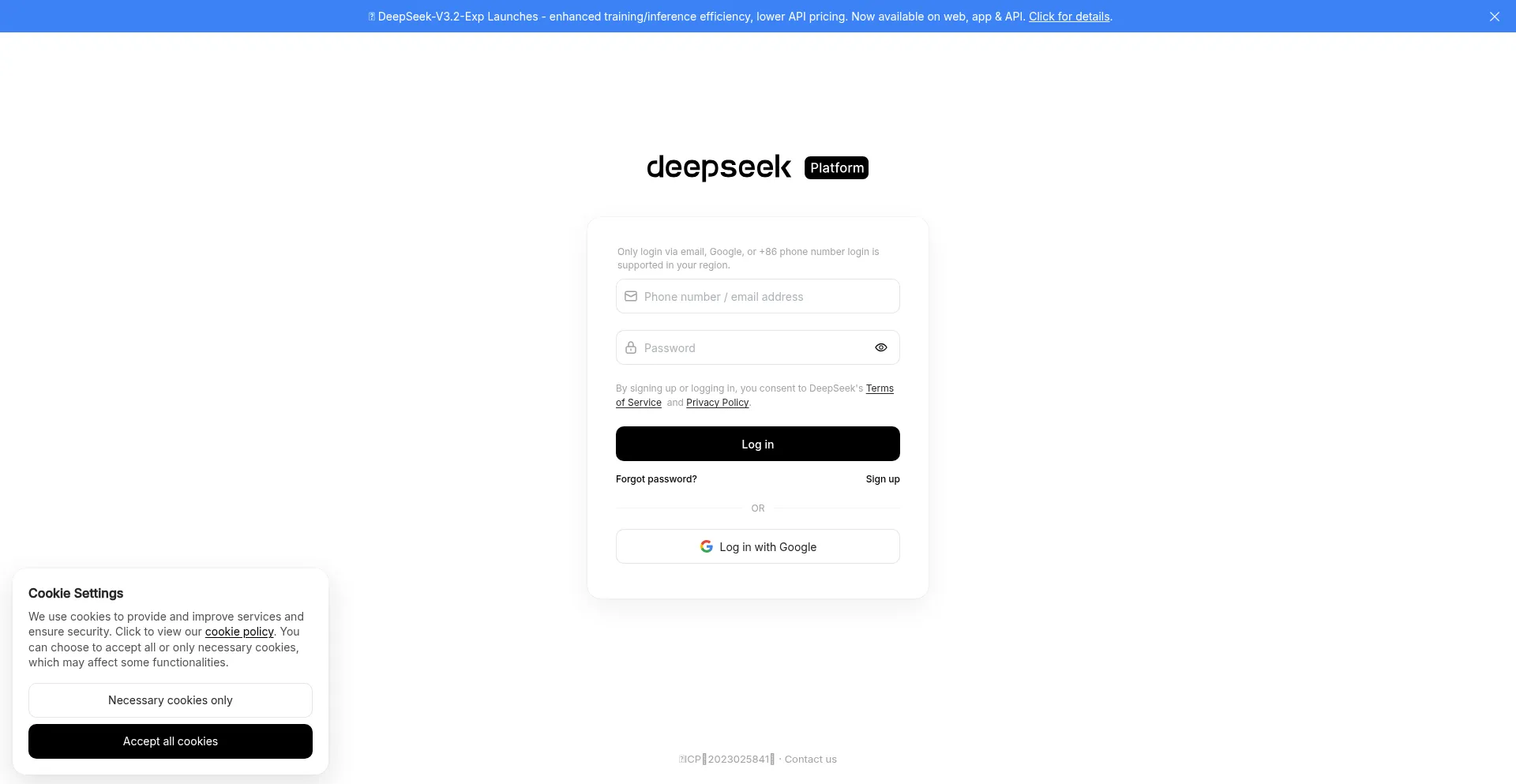The website implements cookie consent mechanisms in compliance with privacy regulations such as GDPR or CCPA. This demonstrates that platform.deepseek.com adheres to data protection standards and provides users with control over personal data collection practices.