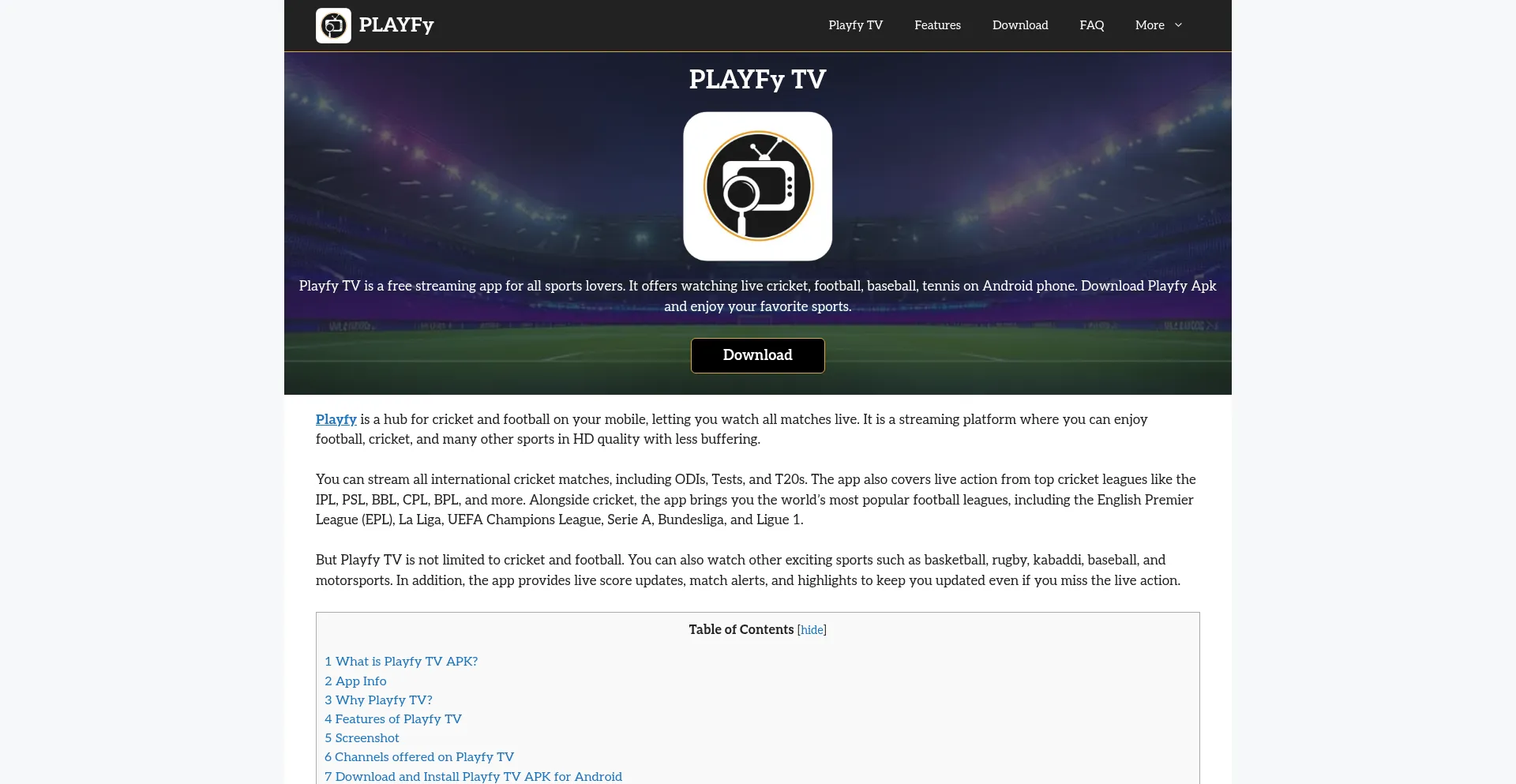 Playfy TV is a free streaming app for all sports lovers. It offers watching live cricket, football, baseball, tennis on Android phone. Download Playfy Apk and
