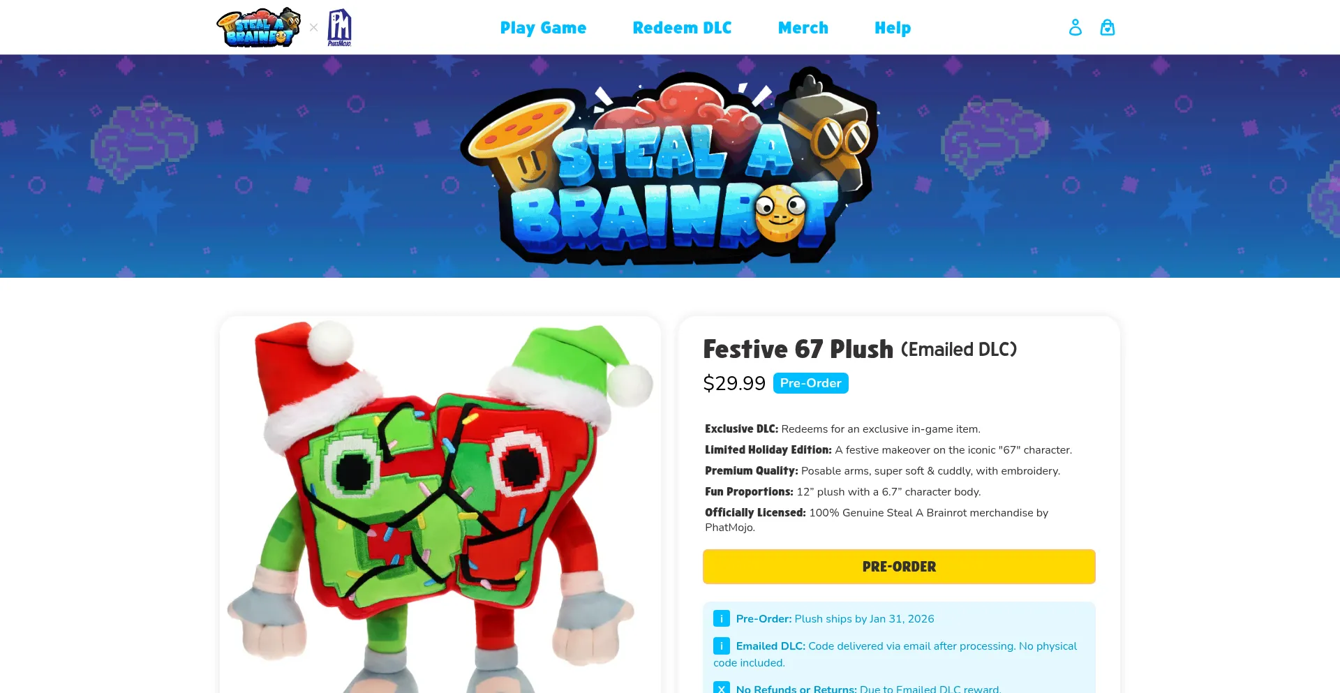 Your one-stop shop for merch and exclusive DLC from the hit Roblox game, Steal A Brainrot.