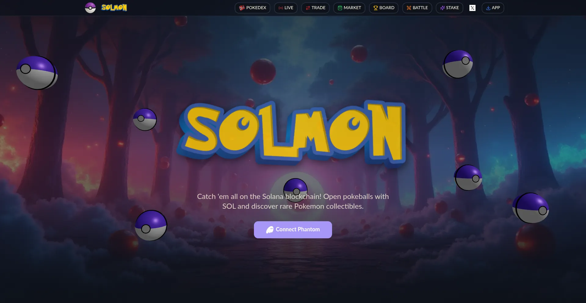 Open pokeballs with SOL and discover rare Pokémon. Connect your Phantom wallet to start your collection and battle other trainers!