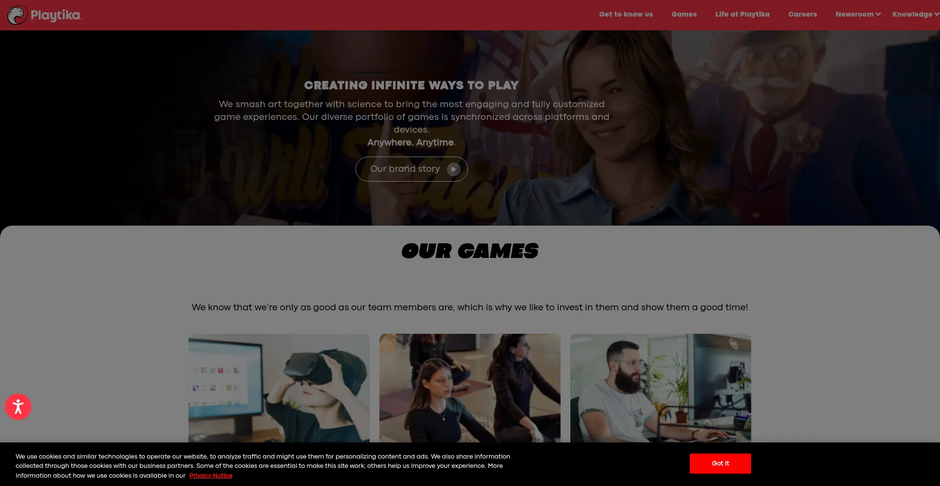 The website implements cookie consent mechanisms in compliance with privacy regulations such as GDPR or CCPA. This demonstrates that playtika.com adheres to data protection standards and provides users with control over personal data collection practices.