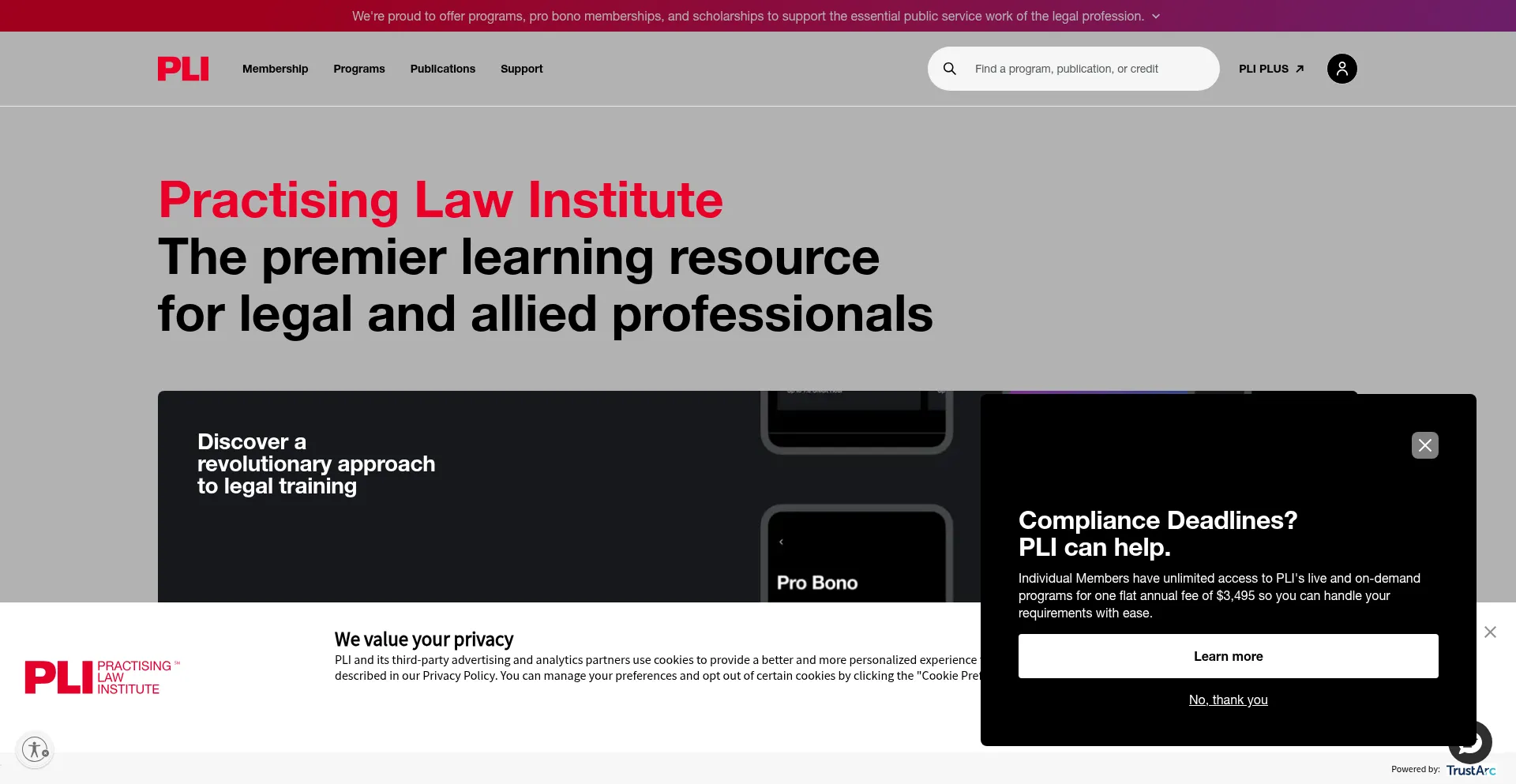 consent.trustarc.com snap.licdn.com c.clarity.ms pli.my.salesforce-scrt.com plus.pli.edu cms.pli.edu vc.hotjar.io script.hotjar.com www.google.com scripts.clarity.ms +18 more