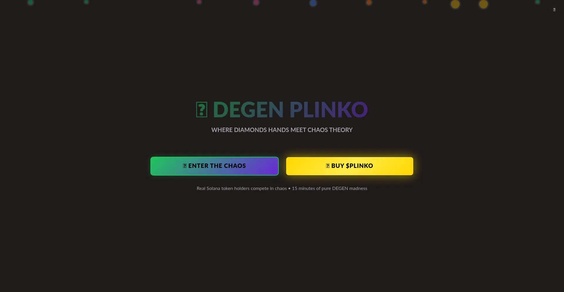DEGEN PLINKO - Where diamond hands meet chaos theory. Real Solana token holders compete in the ultimate crypto Plinko game.