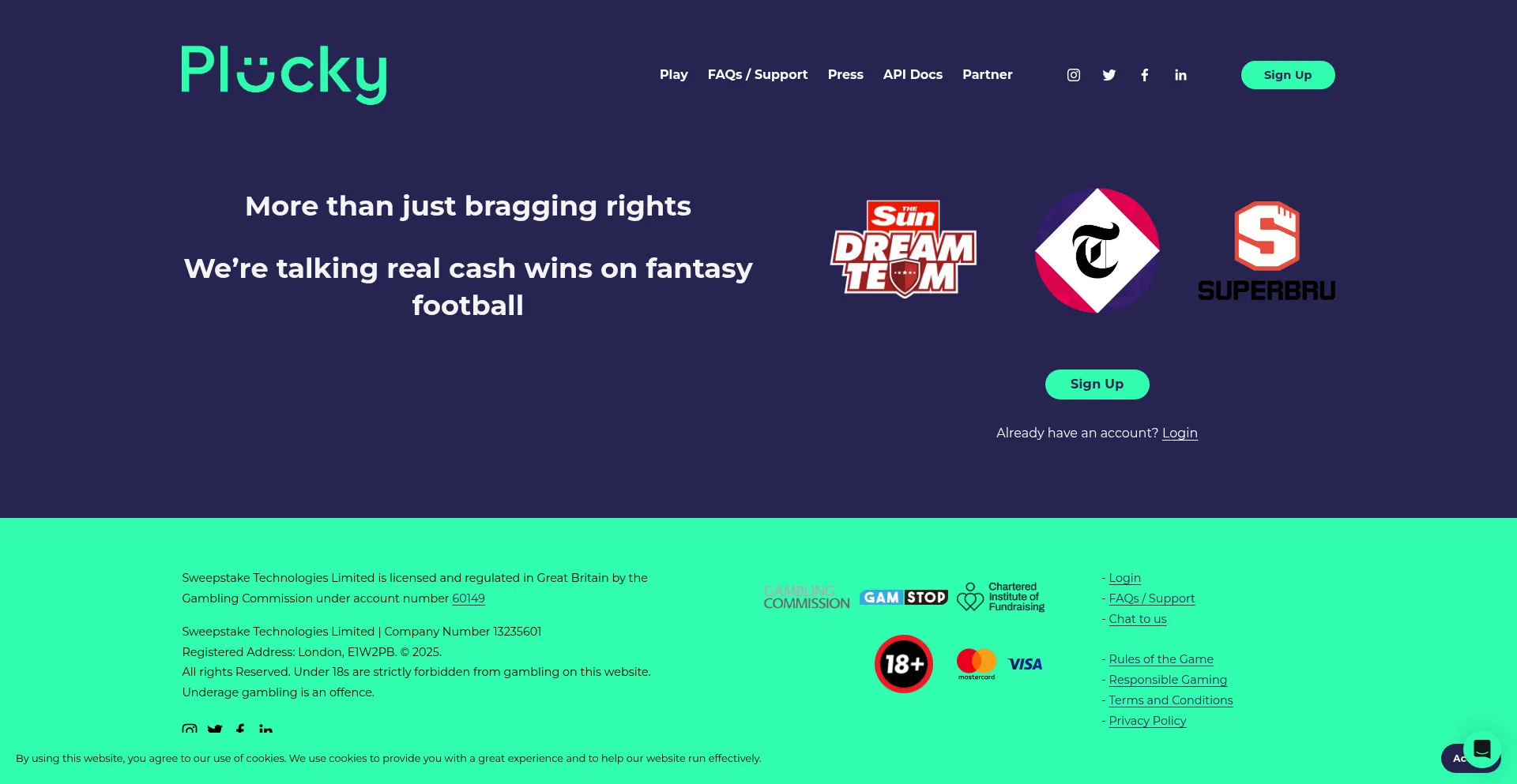 Plucky - More than just bragging rights. We're talking real cash wins, paid out instantly, on any event or games of luck or skill. Fantasy Football, Sun Dream Team, Telegraph Fantasy Football, Superbru, Sixes Cricket. Plucky