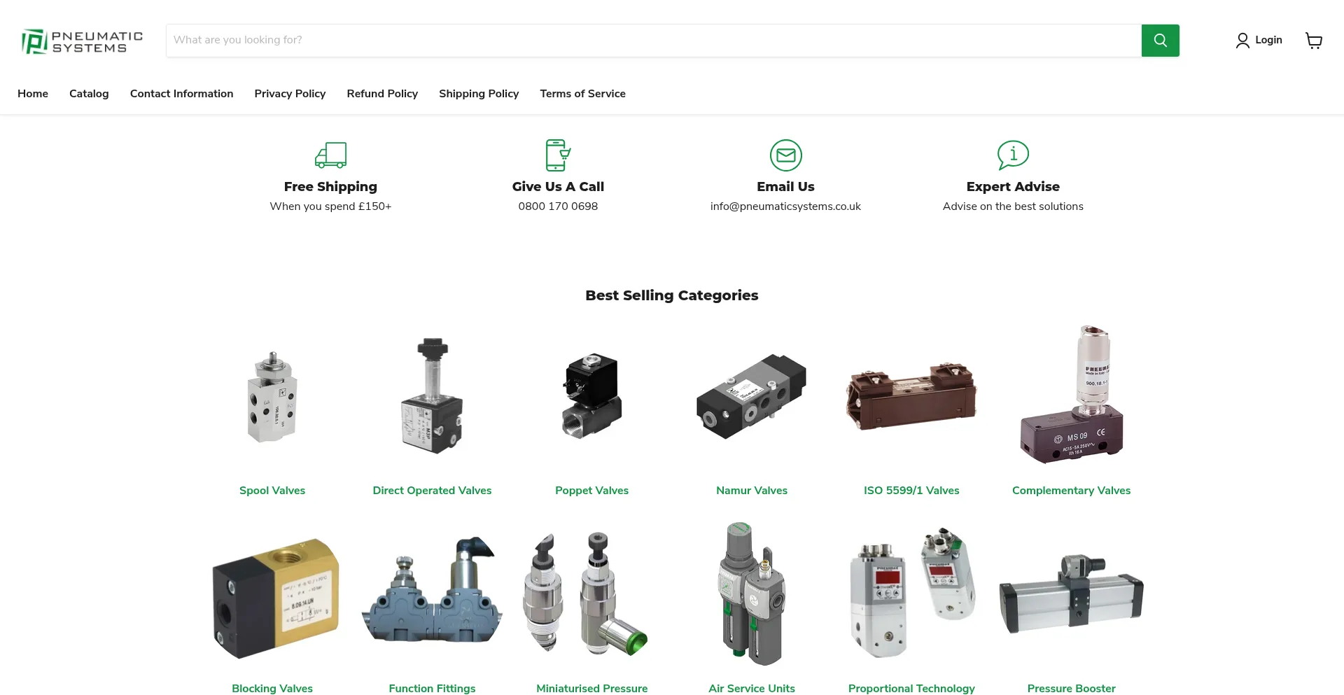 Our analyzer determines that website pneumaticsystems.co.uk is using Shopify CMS. Shopify is a popular e-commerce platform, powering around 4.4% of websites globally.