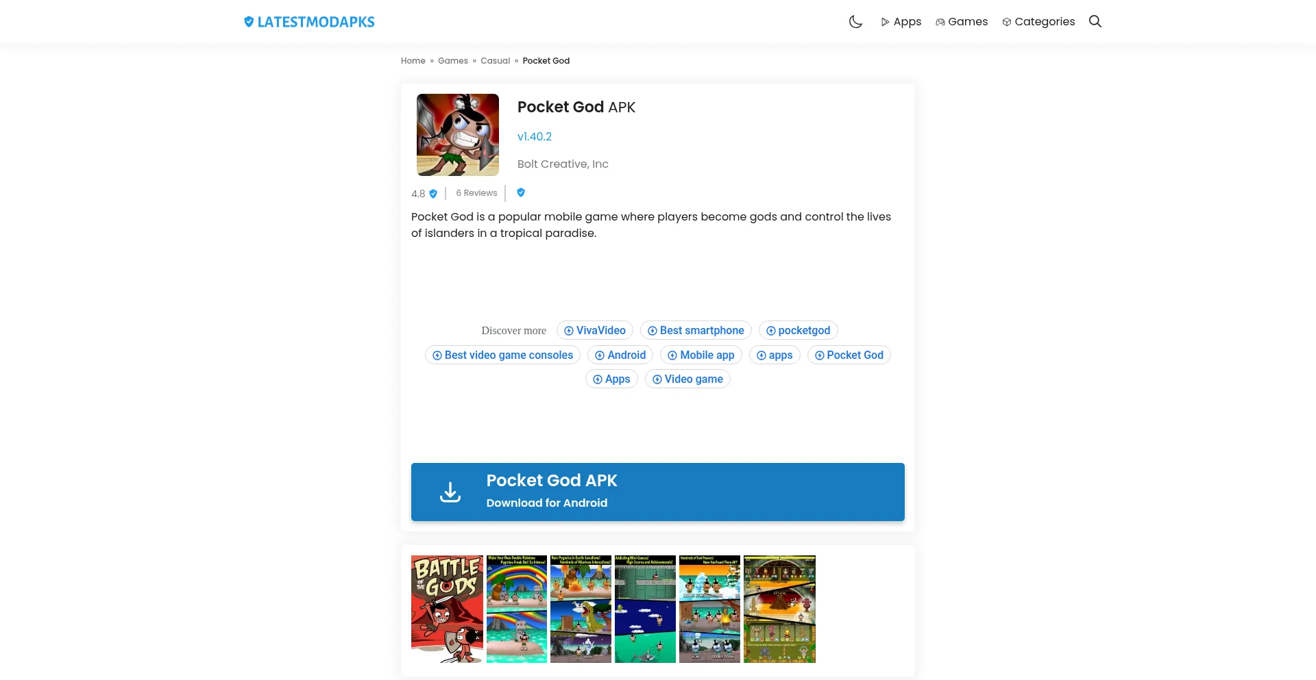The pocket-god.latestmodapks.com website employs search engine optimization (SEO) techniques to improve its visibility and ranking in search engine results pages (SERPs).