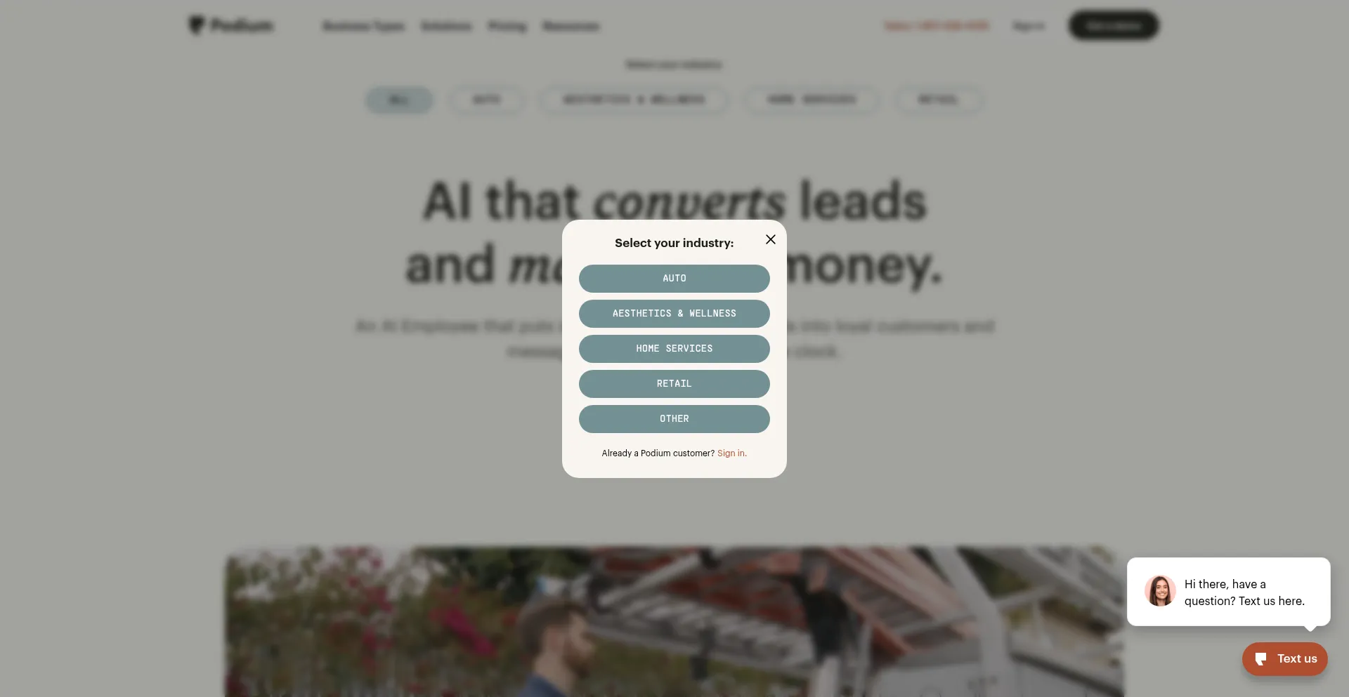 The podium.com website uses Google Tag Manager to add and update tracking tags on its website.