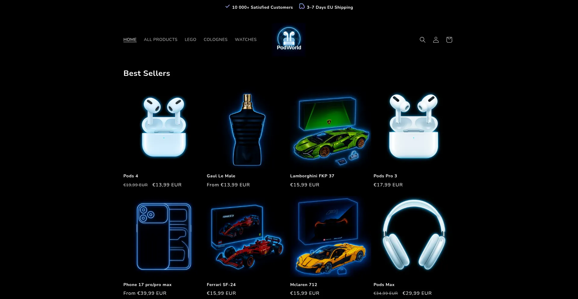 The website leverages popular product names and brands to attract traffic and generate user interest. These products may be offered through promotional campaigns or discount strategies designed to increase visitor engagement and conversion rates for podworld.store.
