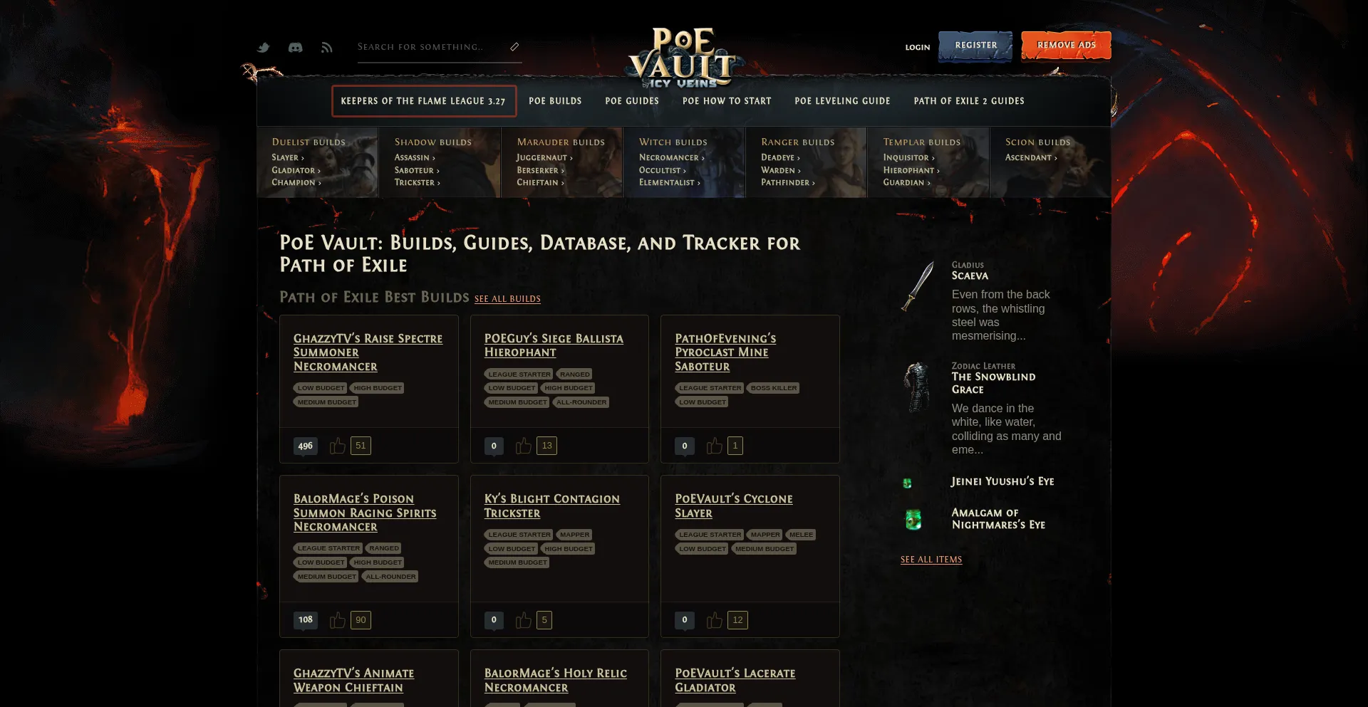 PoE Vault provides a large selection of builds and guides, as well as an item database for Path of Exile.