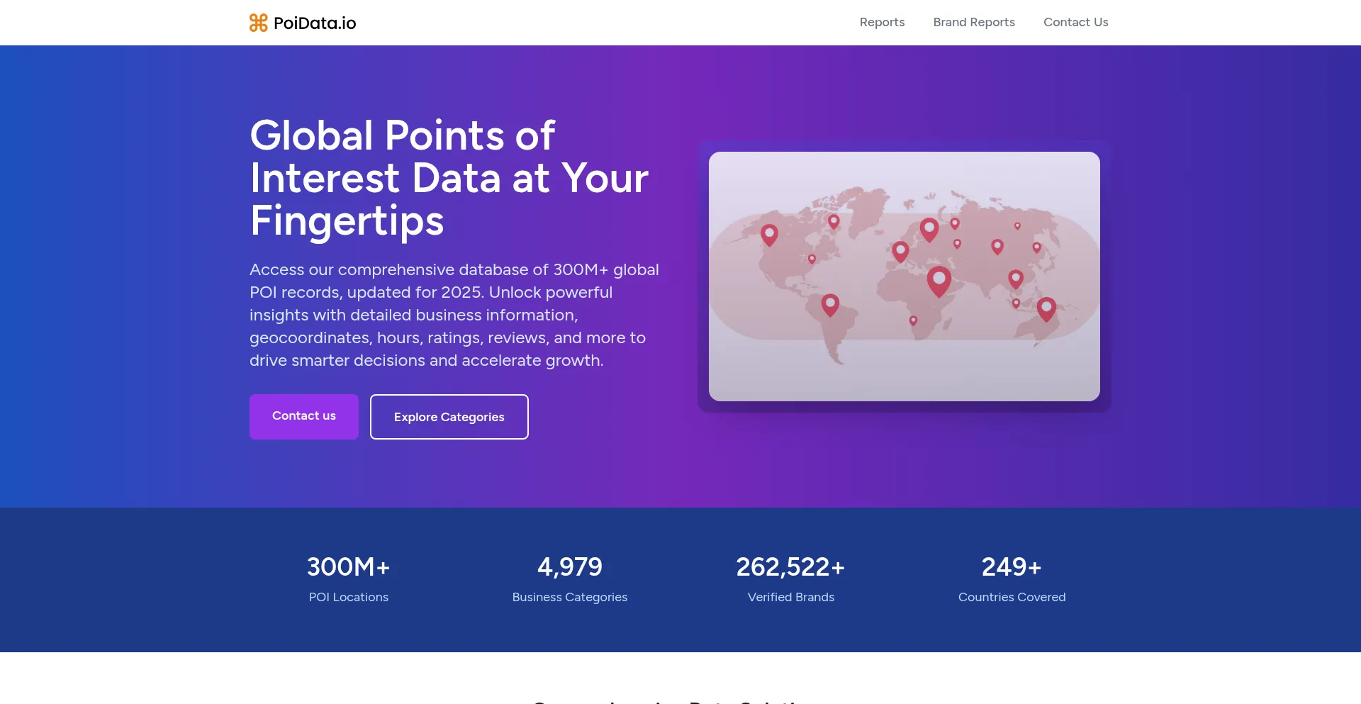 Access our comprehensive database of 300M+ places POI data, updated for 2025. Fuel your growth with unparalleled market insights and high-quality business data worldwide.