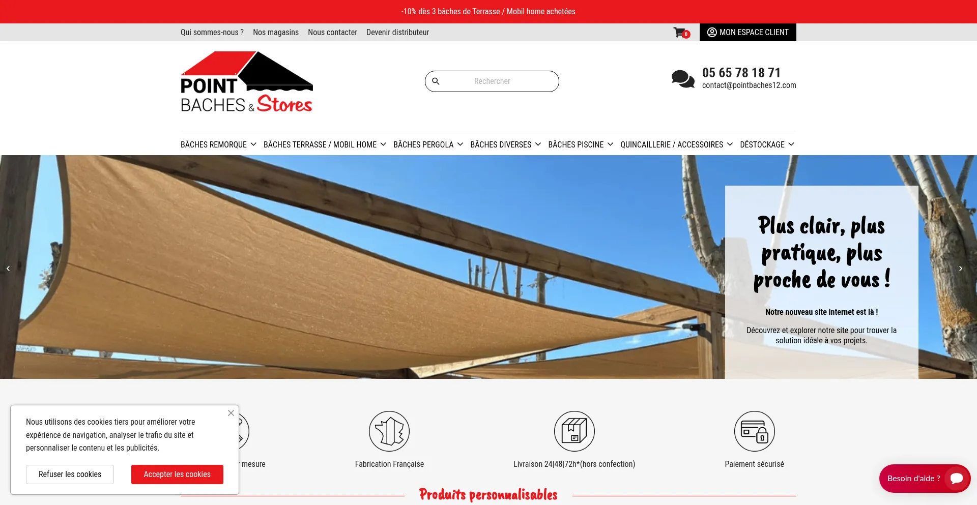 Découvrez notre gamme complète de bâches et accessoires sur mesure pour remorques, mobil‐homes, bateaux, pergola et bien plus.