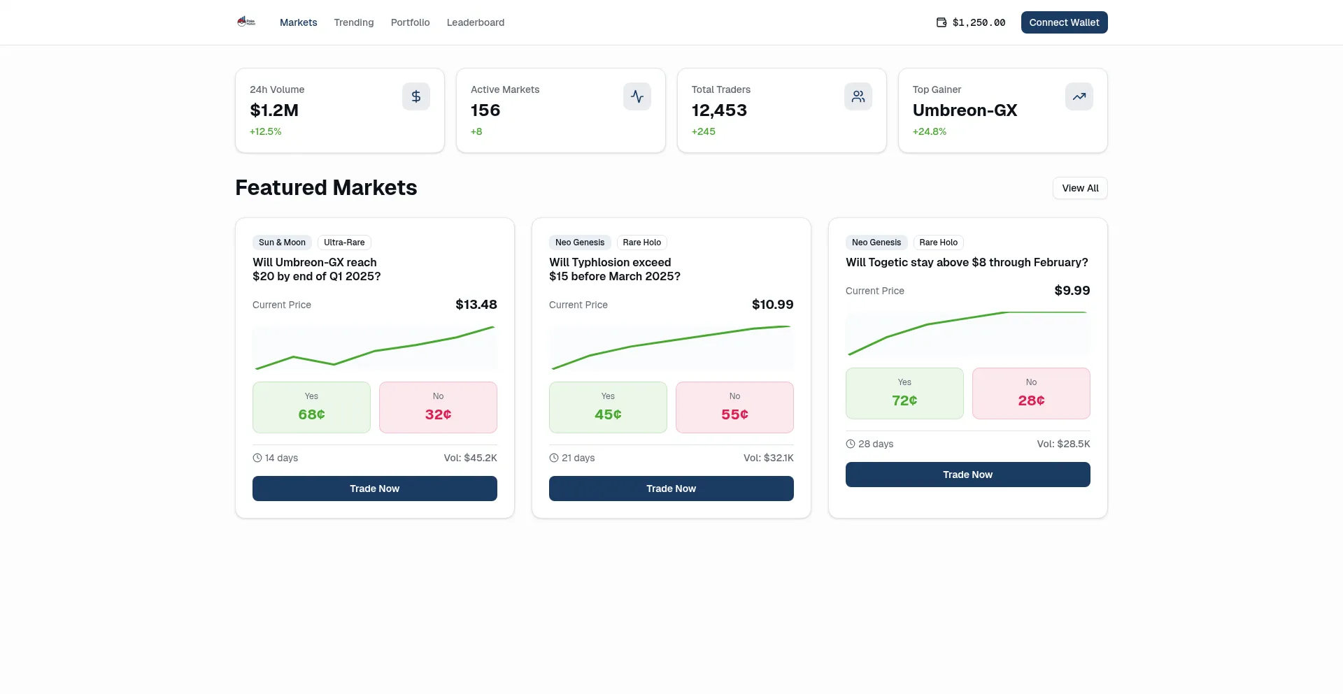 Trade predictions on Pokemon card prices. A professional prediction market for Pokemon TCG collectors and investors.