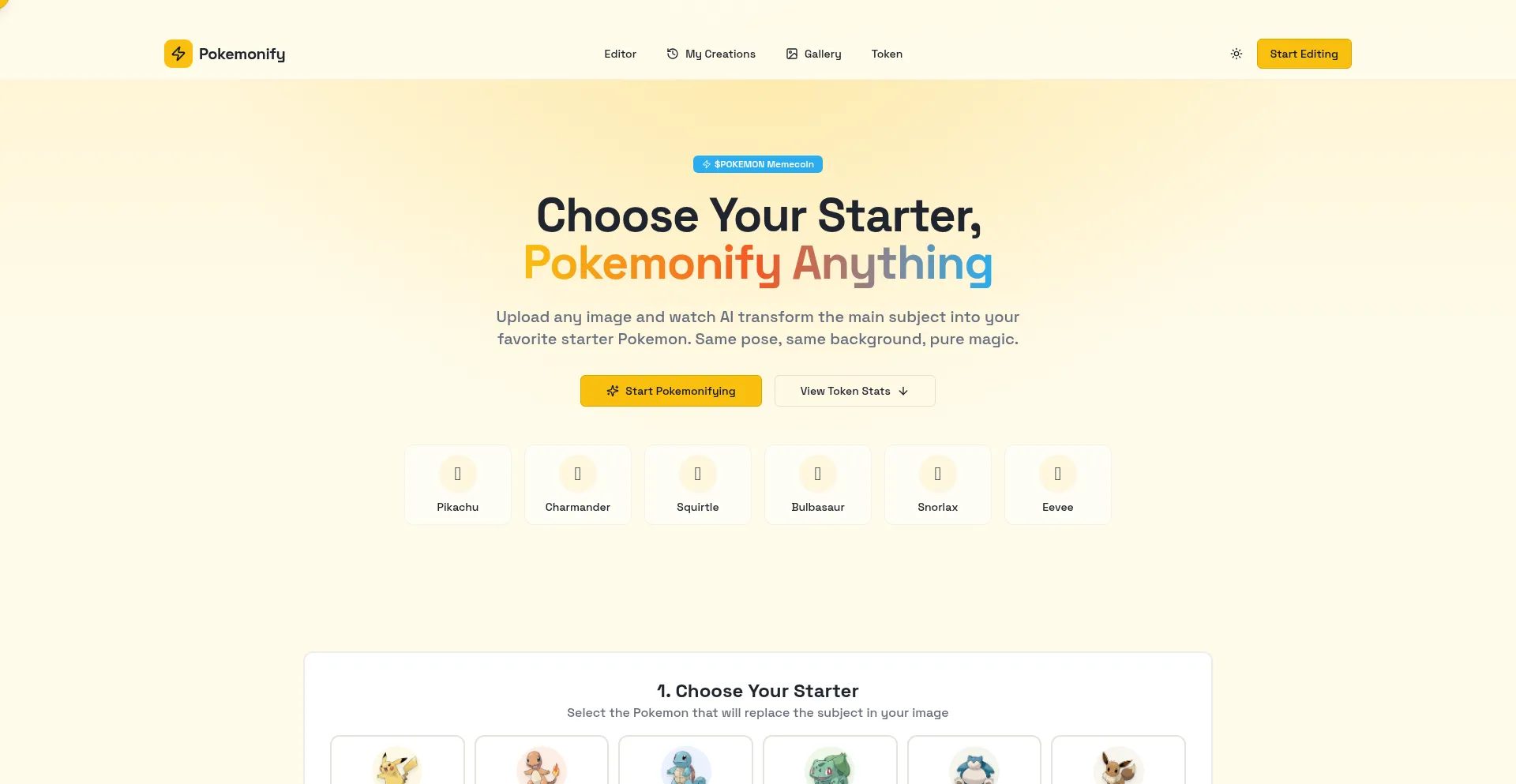 Pokemonify - Transform Any Image with Your Favorite Starter Pokemon | $POKEMON