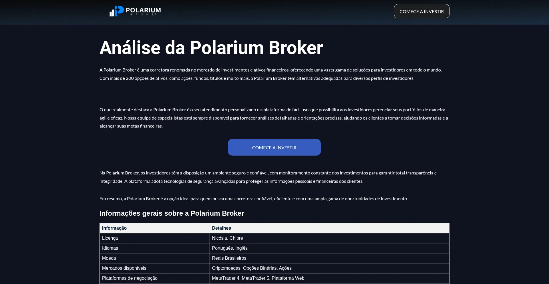 A Polarium Broker se destaca como uma das principais corretoras de investimentos, oferecendo uma ampla gama de serviços financeiros para investidores globais. Com opções que ...