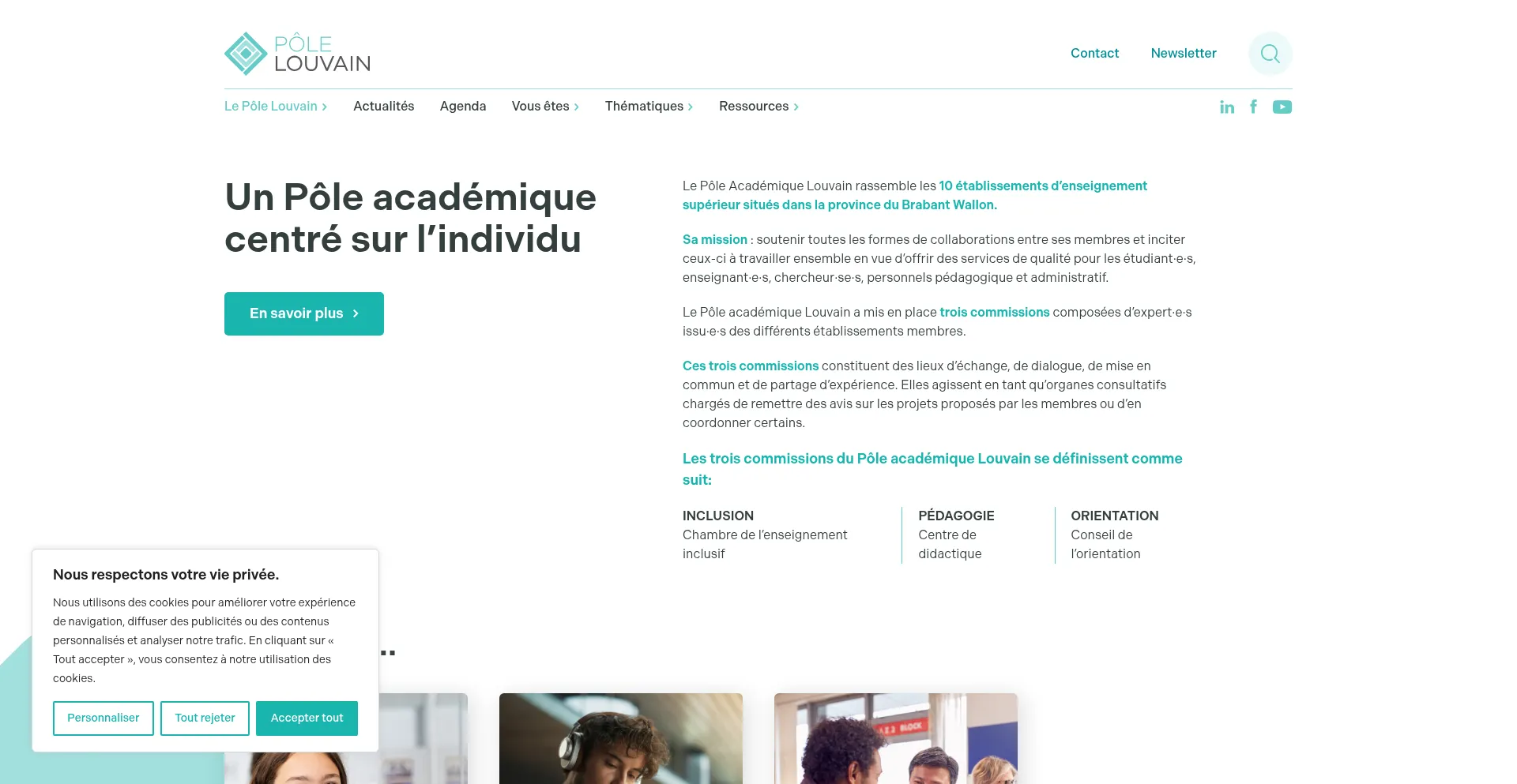 The website implements cookie consent mechanisms in compliance with privacy regulations such as GDPR or CCPA. This demonstrates that polelouvain.be adheres to data protection standards and provides users with control over personal data collection practices.