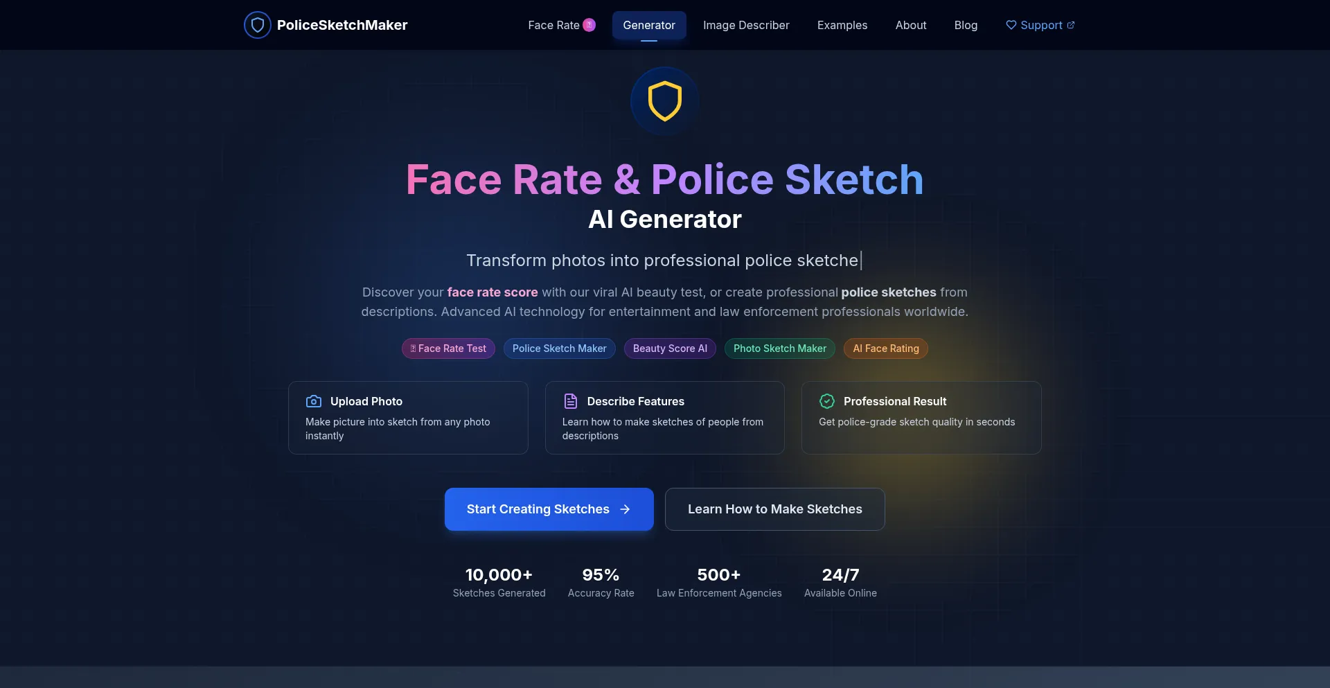 Professional police sketch maker tool. Learn how to make sketch of face, transform photos into sketches, and create police sketches online. Used by law enforcement professionals.