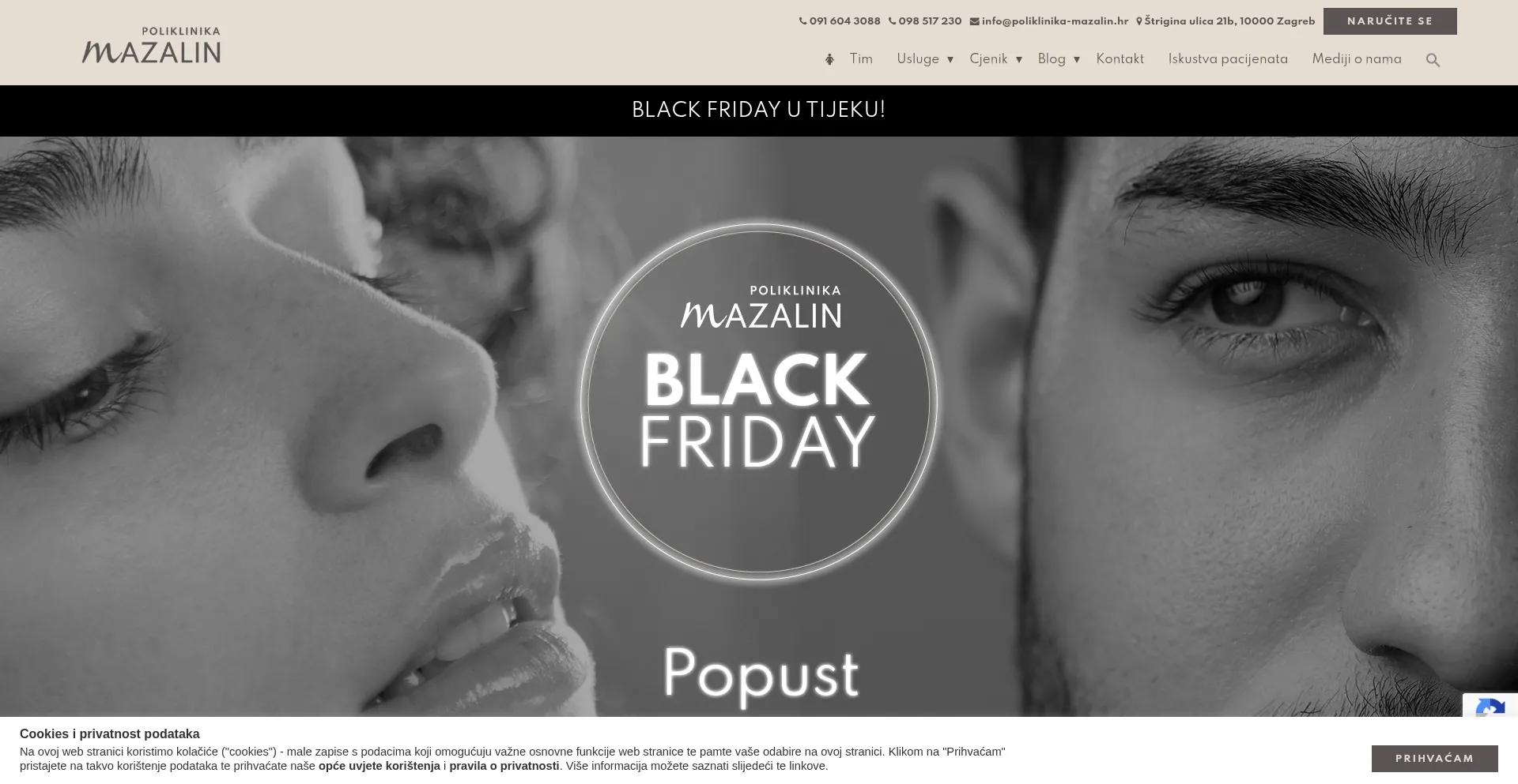 The website implements cookie consent mechanisms in compliance with privacy regulations such as GDPR or CCPA. This demonstrates that poliklinika-mazalin.hr adheres to data protection standards and provides users with control over personal data collection practices.