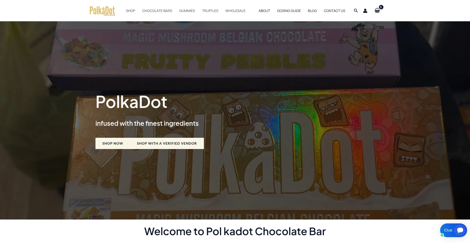 Discover Polkadot Chocolate, a premium line of gourmet chocolates infused with psilocybin mushrooms, experience irresistible flavors.