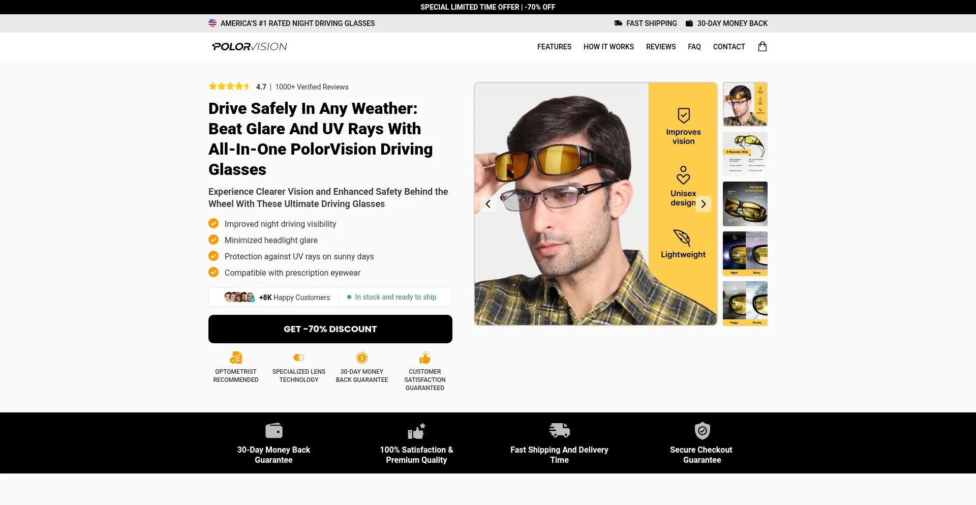 PolorVision are all-in-one driving glasses that improve your vision and comfort while driving in all weather conditions and times of day. With innovative lens technology, these ...