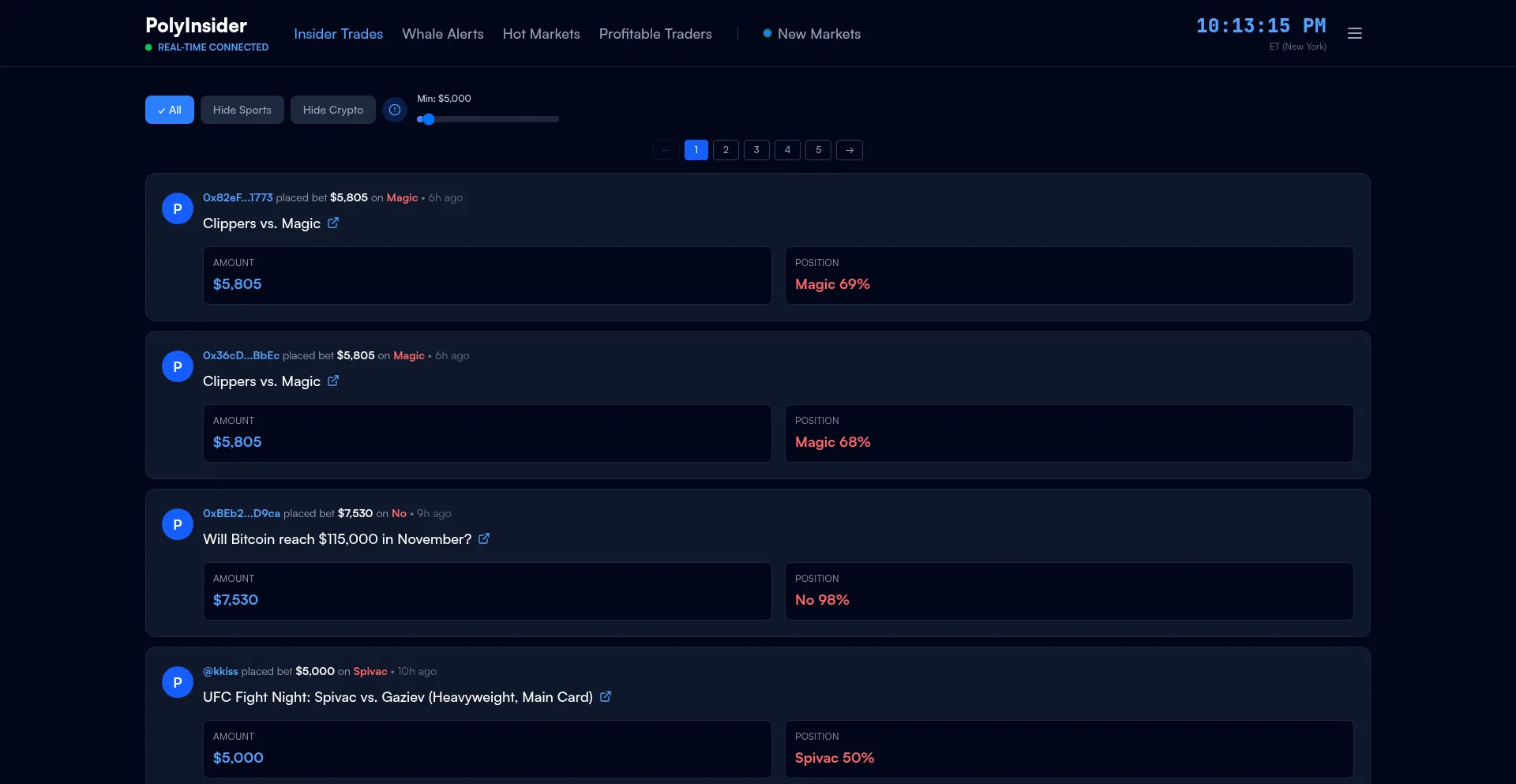 Track insider trades, whale activity, and market trends on Polymarket in real-time