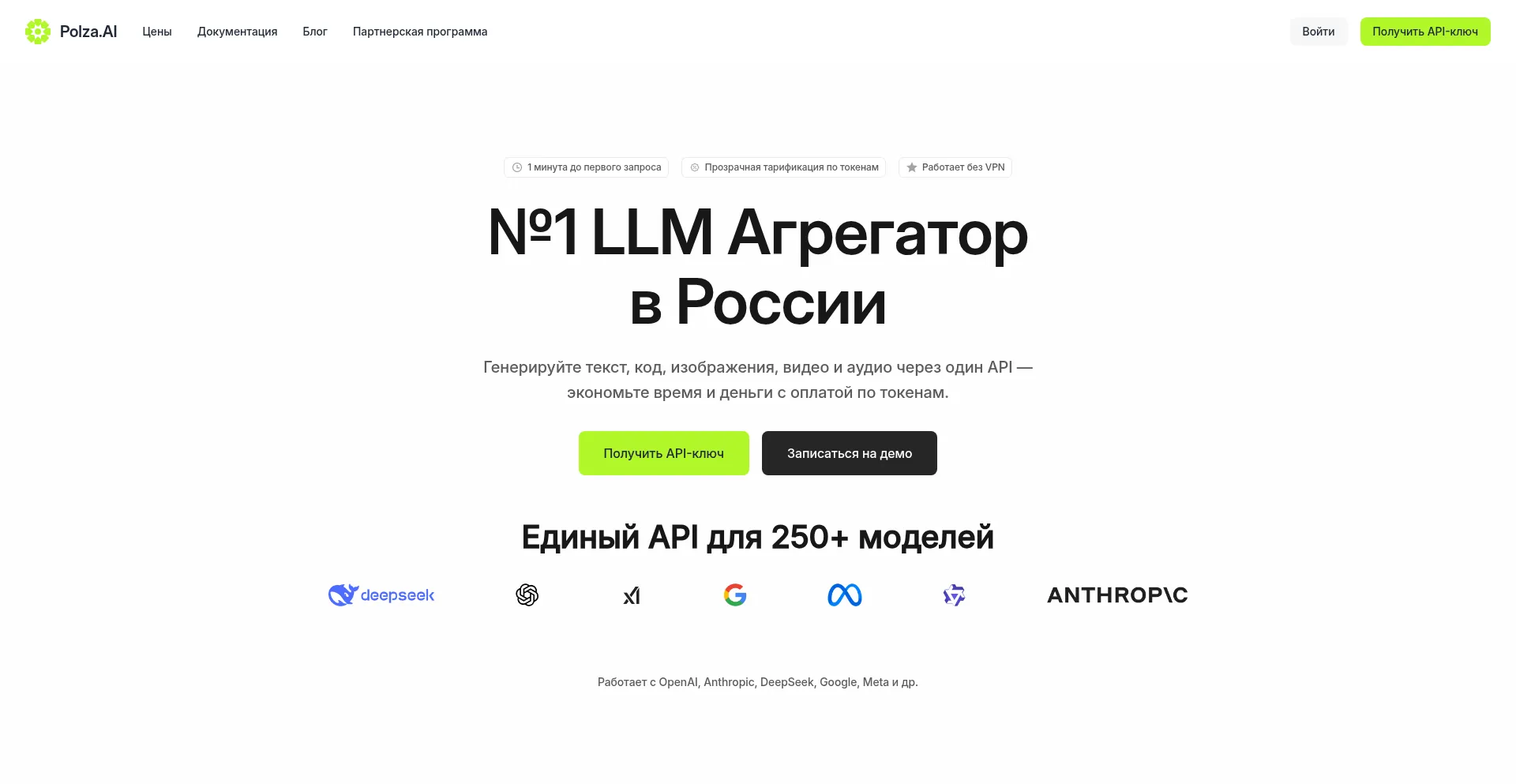 Платформа №1 в России с доступом к 250+ моделям ИИ через единый API
