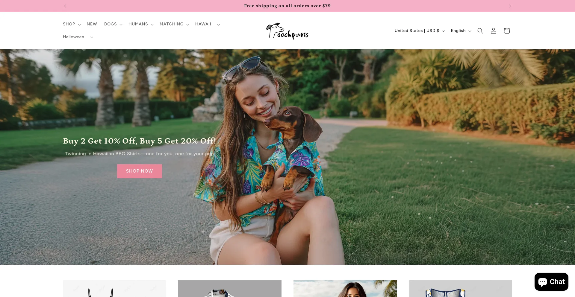 Analysis indicates that poochparis.com operates as an e-commerce platform facilitating online transactions for goods or services. The website implements shopping cart functionality, payment processing systems, and product catalog features typical of commercial retail operations.