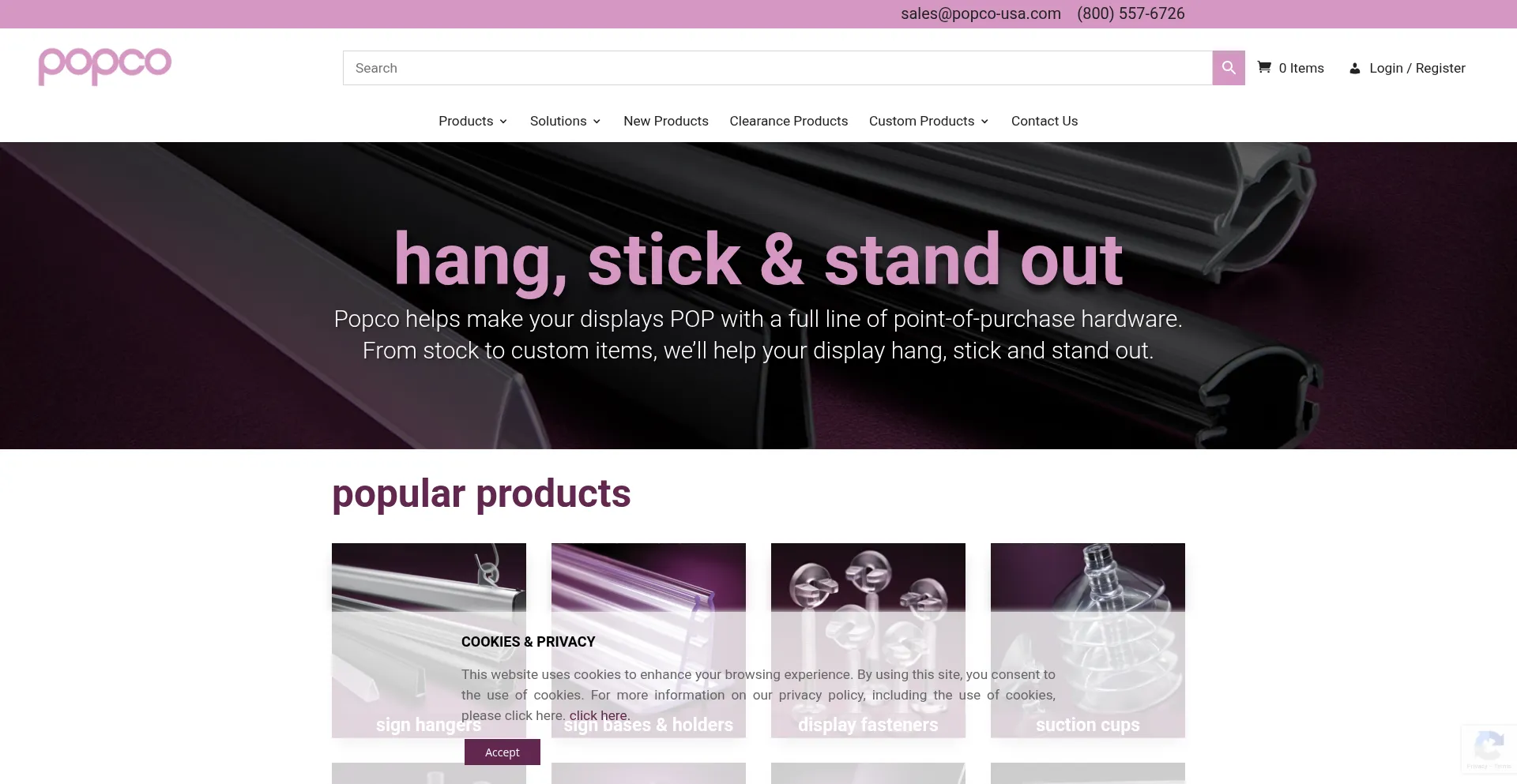 Popco helps make your displays POP with a full line of point-of-purchase hardware. From stock to custom items, we’ll help your display hang, stick and stand out.