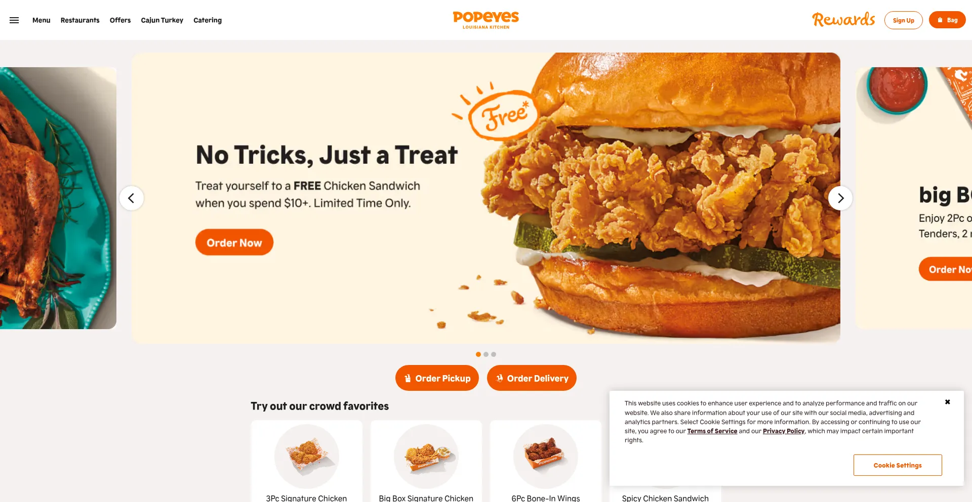 The website implements cookie consent mechanisms in compliance with privacy regulations such as GDPR or CCPA. This demonstrates that popeyes.com adheres to data protection standards and provides users with control over personal data collection practices.