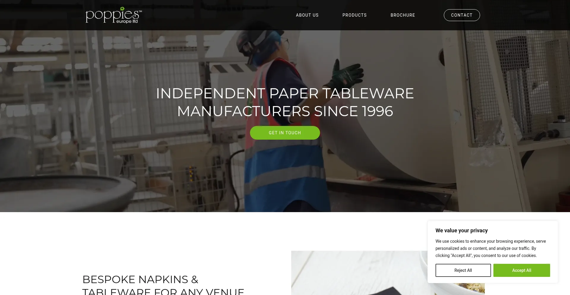 Poppies Europe an independent tableware manufacturer since 1996, specialising in bespoke napkins and tableware for any venue and every occasion.