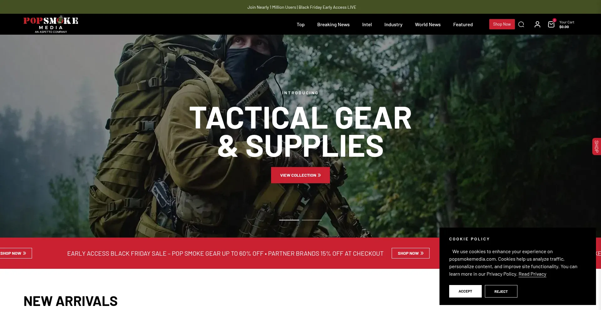Shopping Deals Guns Uses Free eCommerce Engine Registration Form Discount Cookie Consent Shopify Platform Social Media Links AI-generated Text Established Domain High Trust Score