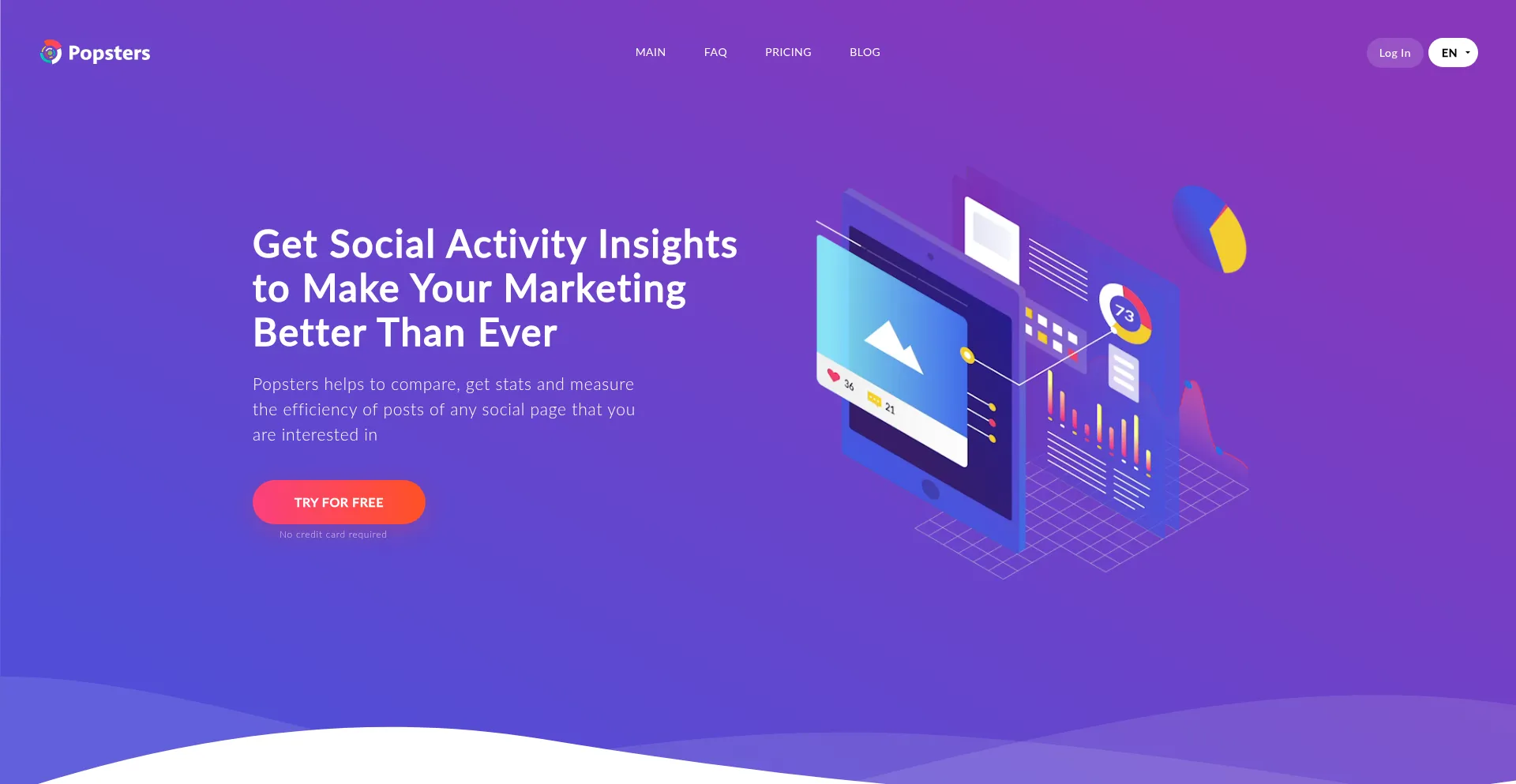 Popsters - statistics and analytics of posts in Facebook, YouTube, Flickr, Instagram, Coub, Pinterest, TikTok, Telegram, Tumblr, VK, OK and Twitter