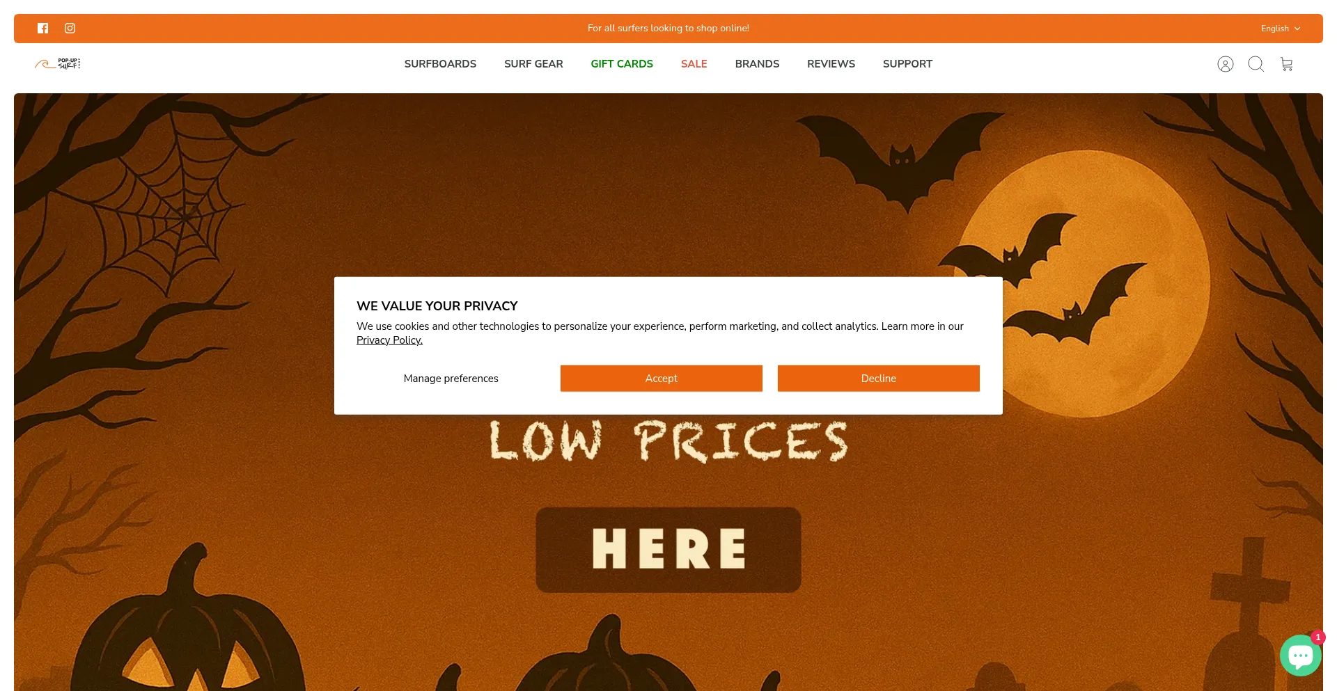 The website implements cookie consent mechanisms in compliance with privacy regulations such as GDPR or CCPA. This demonstrates that popupsurfshop.eu adheres to data protection standards and provides users with control over personal data collection practices.