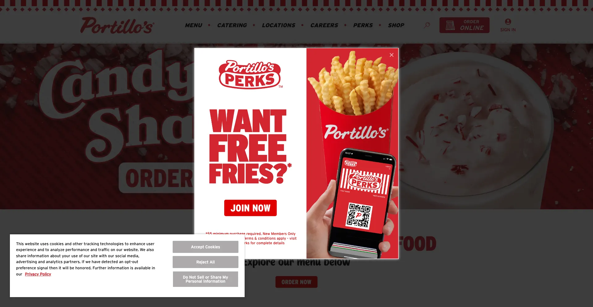 The website implements cookie consent mechanisms in compliance with privacy regulations such as GDPR or CCPA. This demonstrates that portillos.com adheres to data protection standards and provides users with control over personal data collection practices.