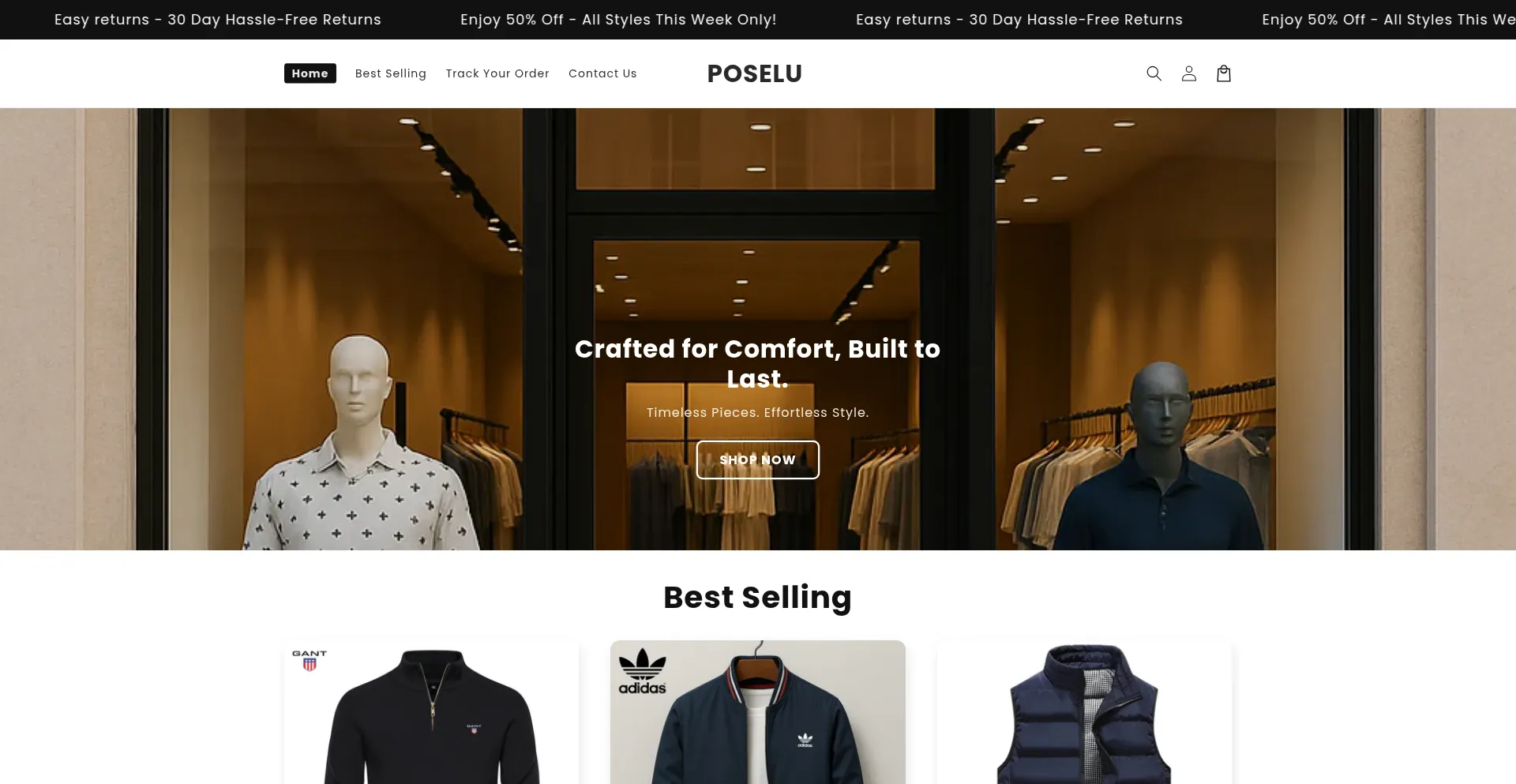 The poselu.com website utilizes free e-commerce platform solutions, which may indicate cost-conscious operations but could also suggest limitations in security features, customer support, or advanced functionality compared to enterprise-grade solutions.